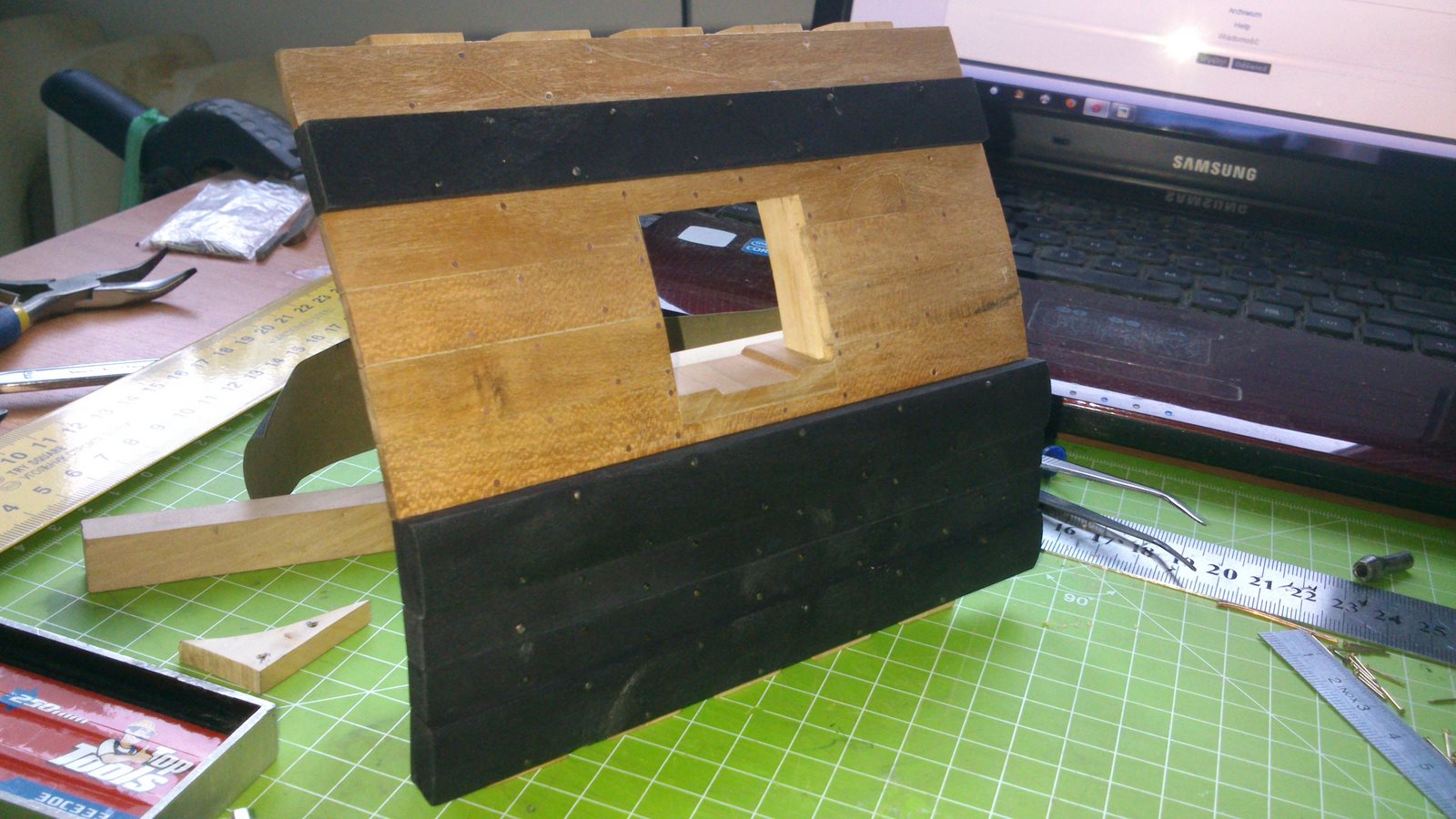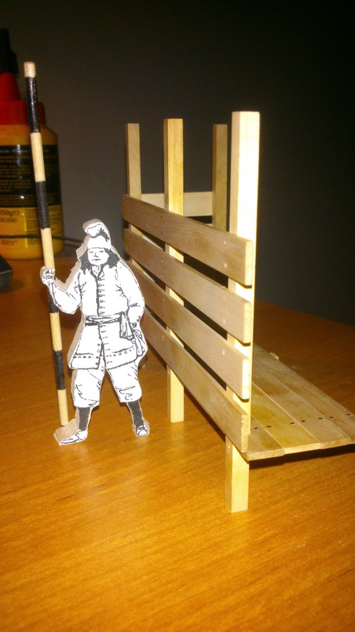Imitacja kołków wykonana z miedzianego drutu o średnicy 1 mm, a gwoździe na odbojnicach to gwoździki z zestawu DeAgostini (na coś się przydały) czerniłem łebki gwoździków nad płomieniem ze świeczki w sumie to nad zniczem