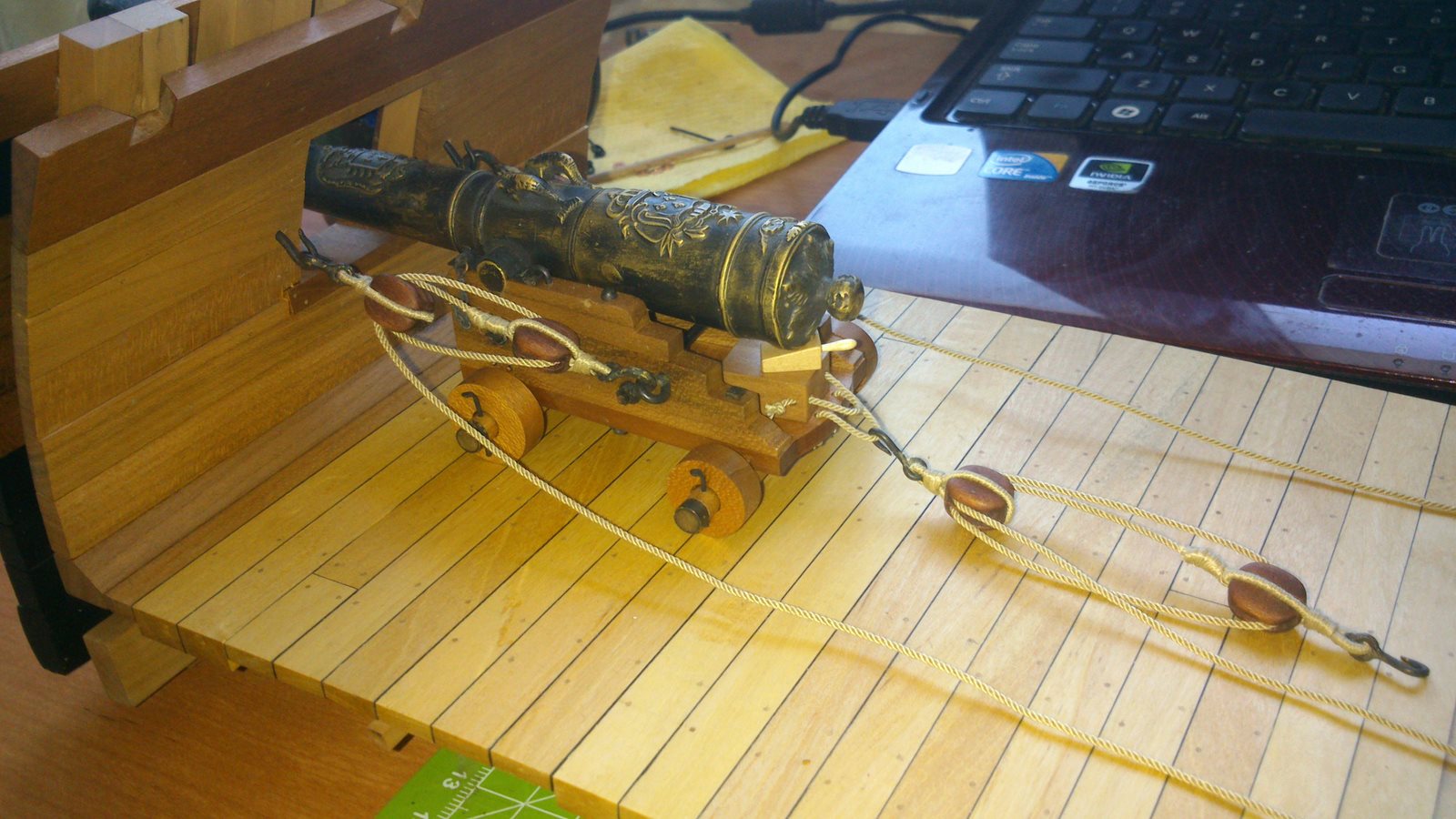 Talie jakby gotowe, została mi lina hamująca działo i tu mam problem bo nie wiem jakiej długości powinna być? czy ktoś by mógł mi pomóc ? Jaka powinna być długość liny hamującej działo w skali 1 :24? Z góry dziękuje.