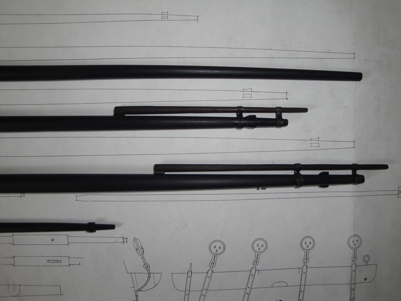 no i przyszedl czas na ostatnie kawalki drewna; wystrugalem dolne reje (material to heban). Teraz juz nic mi nie pomoze i trzeba sie bedzie zabrac za bloczki, linki i supelki.
