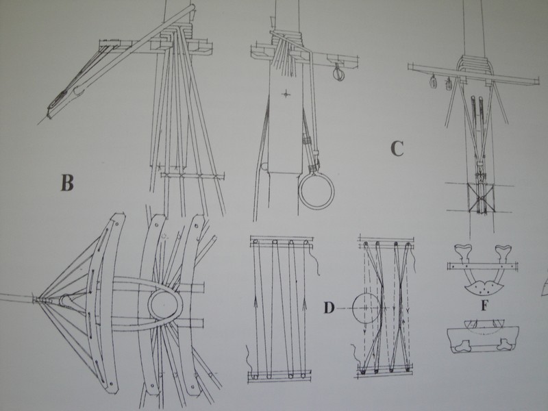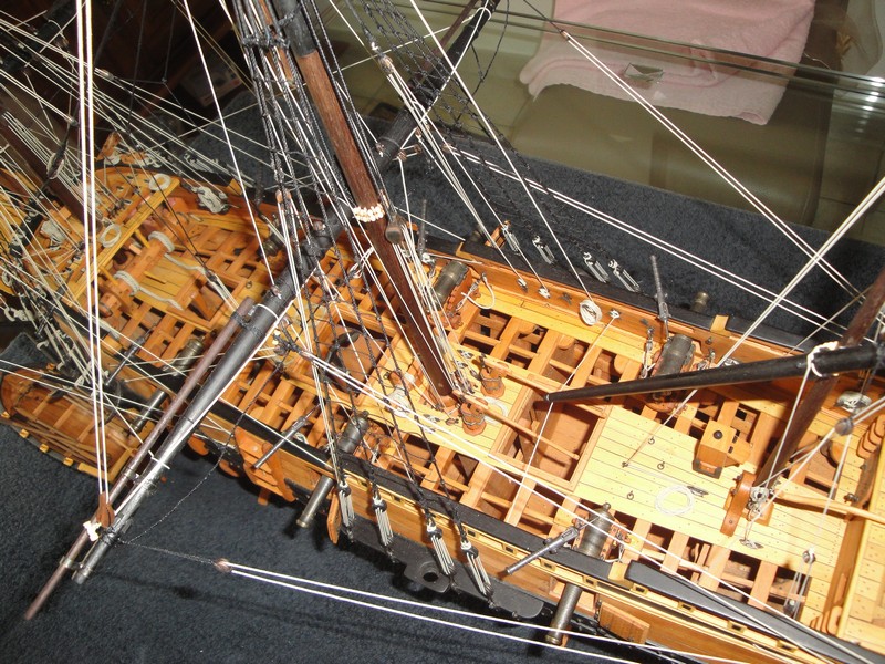 Ikemot, podstawa olinowania w ksiazce Peterssona byla angielska fregata "Melampus". Jean Boudriot opisuje w swoich ksiazkach (np 74-dzialowiec) jednostki francuskie. Nie wiem czy to jest powodem tej roznicy w olinowaniu. Poniewaz moj model, LB jest jednostka francuska, i w jej planach tez zostalo uzyte rozwiazanie podane przez Boudriota (jest on tez autorem tych planow), zastosowalem sie do reguly opierania sie na posiadanych planach (co nie musi znaczyc ze nie istnialy dwa rozwiazania:angielskie i francuskie).