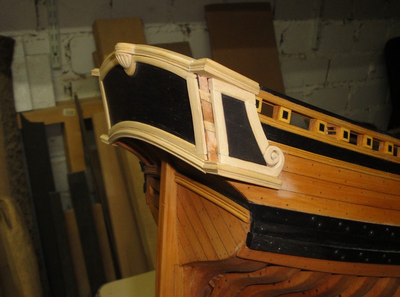 Siberian, musze Cie rozczarowac, ale te bardziej skomplikowane rzezby/ornamenty beda chyba wykonane z modeliny bo do drewna nie mam nerwow (zobacz tez poczatek relacji). Narazie pomalutku dekoruje rufe.