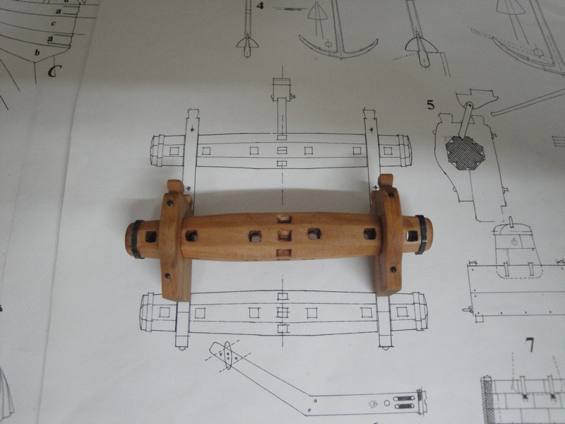 No i stalo sie tak jak musialo sie stac. Przy kabestanie chcialem sobie ulatwic robote wycinajac kwadratowe otwory w belce przy pomocy dlutka/skalpela na glebokosc ok 3-4mm. Kolega na SB spytal dyplomatycznie, czy te otwory nie byly przypadkiem przebijane na wylot. Oczywiscie ze byly i kaszana zostala zdemaskowana. Trzeba bylo zrobic nowy kabestan z otworami na wylot, co w rezultacie bylo latwiejsze niz dlubanie dlutkiem; wiertlo 3mm a potem iglak kwadratowy zalatwily ten problem.