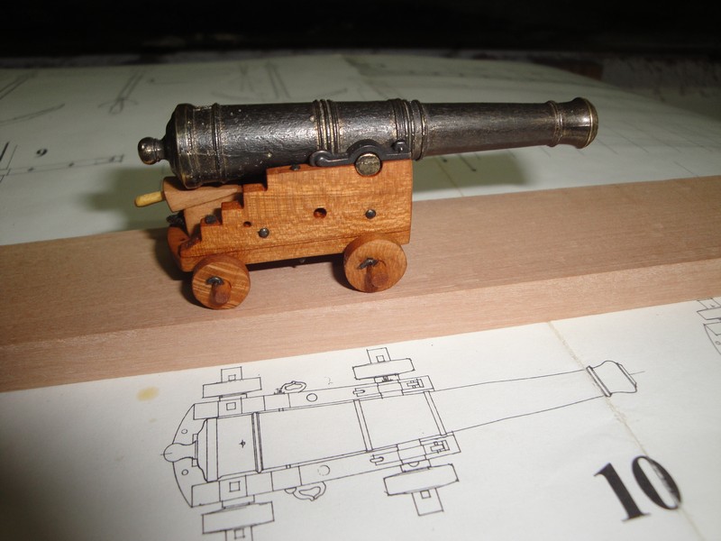 Dziala na mojej LB to klasyczny przyklad skladakow: lufy i ich zamocowanie odlane przez Baranova dostalem od Mirka, lawety z czeresni amerykanskiej od Mirka, sruby, nity i nakretki kupne. Pozostalo mi dogliglowac wszystko, poczernic i skleic. Pierwszy prototyp gotowy:
