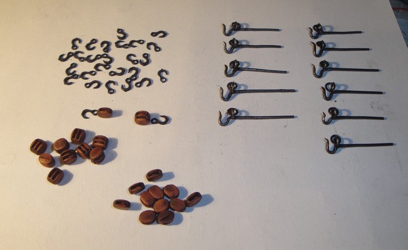 Zabralem sie za wykonanie i instalacje takich roznych drobiazgow: haczyki, kolka, knagi, olinowanie lawet itp. Knagi sa od Mirka (ev. odlewy Baranowa).
