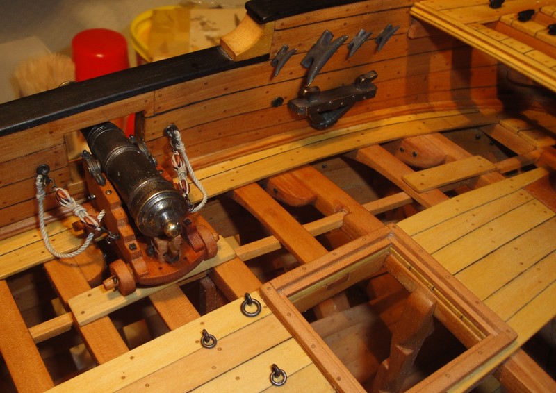 Teraz przyjdzie kolej na uzbrojenie. Poniewaz bede chcial ustawic na pokladzie wszystkie szesc dzial, to z braku miejsca wywale chyba szalupe na zewnatrz, taki jest moj plan.