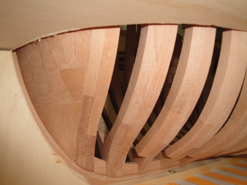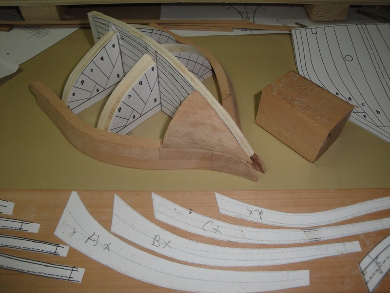 Krzywulce zostaly przylepione do wregi i wygliglowane. Calosc zostala dopasowana do kilu.