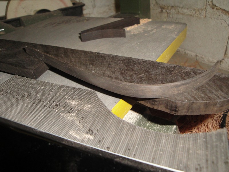 Wyprobowalem nowa zabawke, szablon do krzywych profili. Dziob ma za duza krzywizne, zeby listewke hebanowa, 1,5mm grubosci odpowiednio wyprofilowac. Przenioslem ten luk na heban 10mm grubosci, i wycialem z pelnego materialu odpowiedni profil. I co powiecie, pasowal do burty dziobowej.