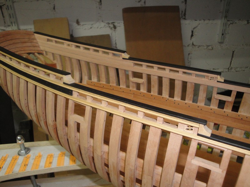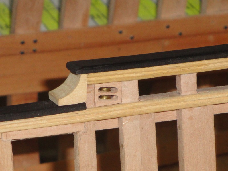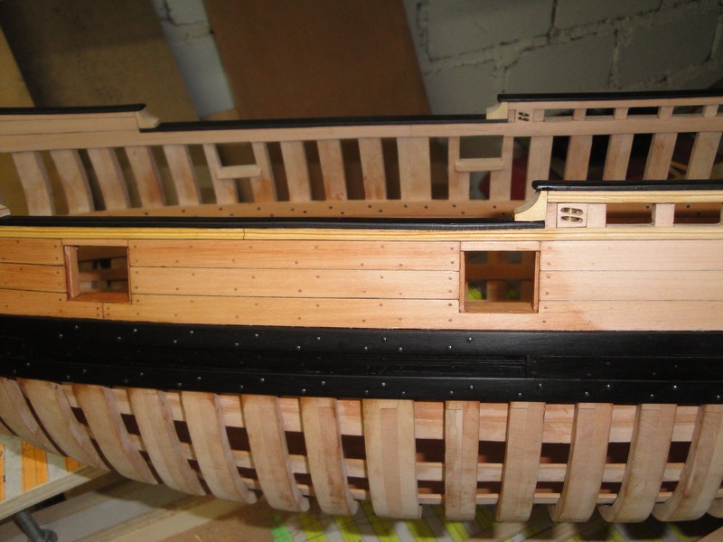 Wystrugalem takie detale, jakies bloczki w burtach. Otwory wyfrezowane, walki kupne tu: rbmodel.pl
