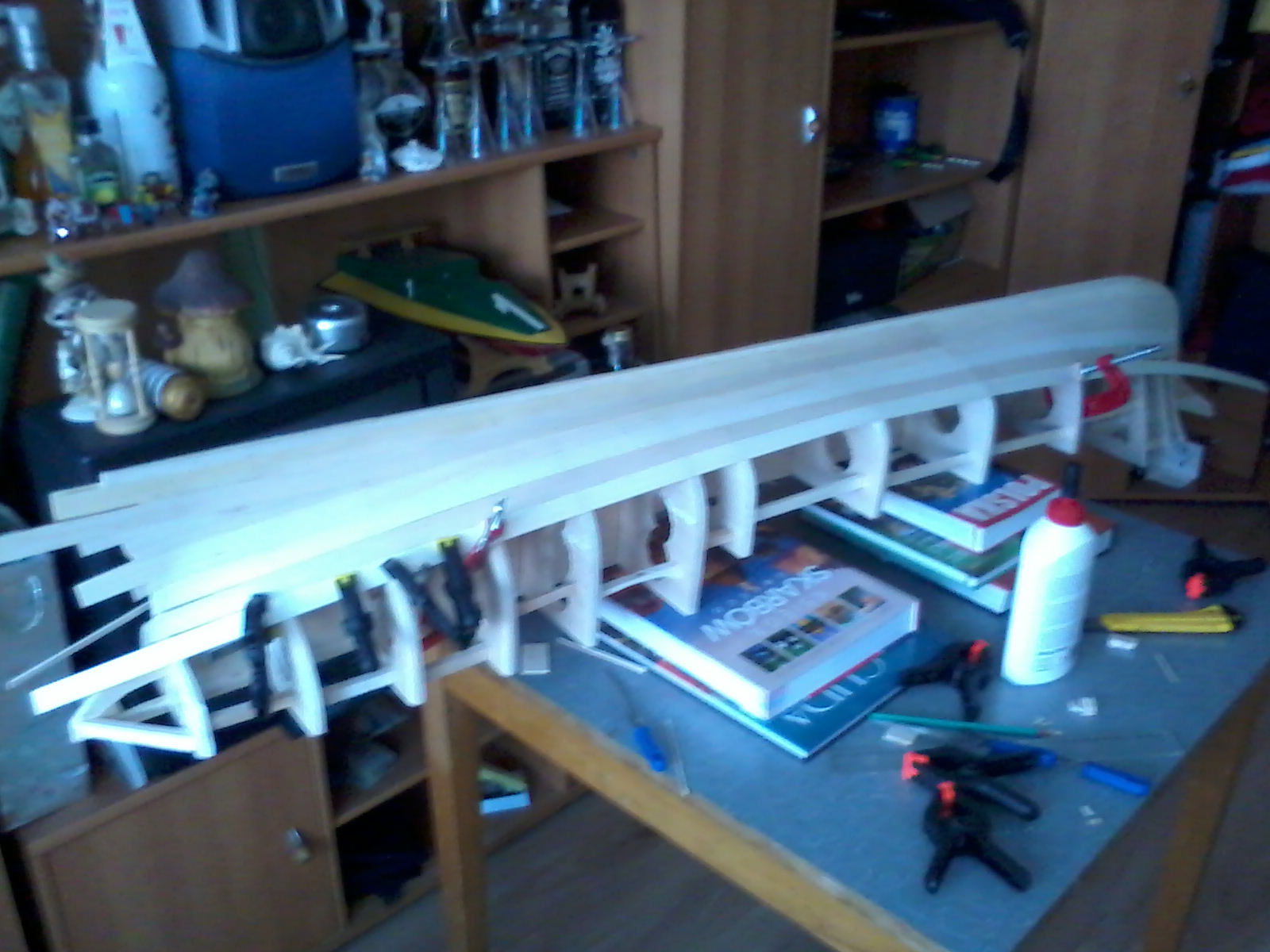 Zacząć trzeba było oczywiście od szkieletu. zajeło mi to wtedy pamiętam pare dni. konstrukcja musi być mocna ponieważ ma to być model pływający dobrze dociążony nie można sobie pozwolić na pęknięcia poprzez naprężenia