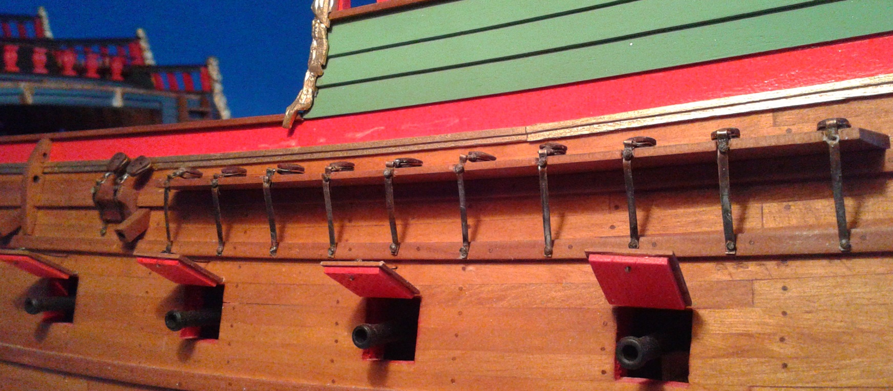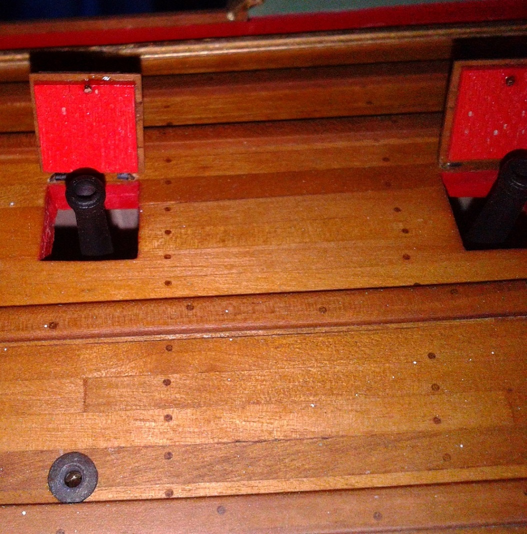 Zamontowałem lufy i pokrywy na pokładzie działowym. Początkowo miałem to zrobić dopiero po zakończeniu prac z takielunkiem, ale stwierdziłem, że może to być dużo trudniejsze niż teraz. Cóż, trzeba