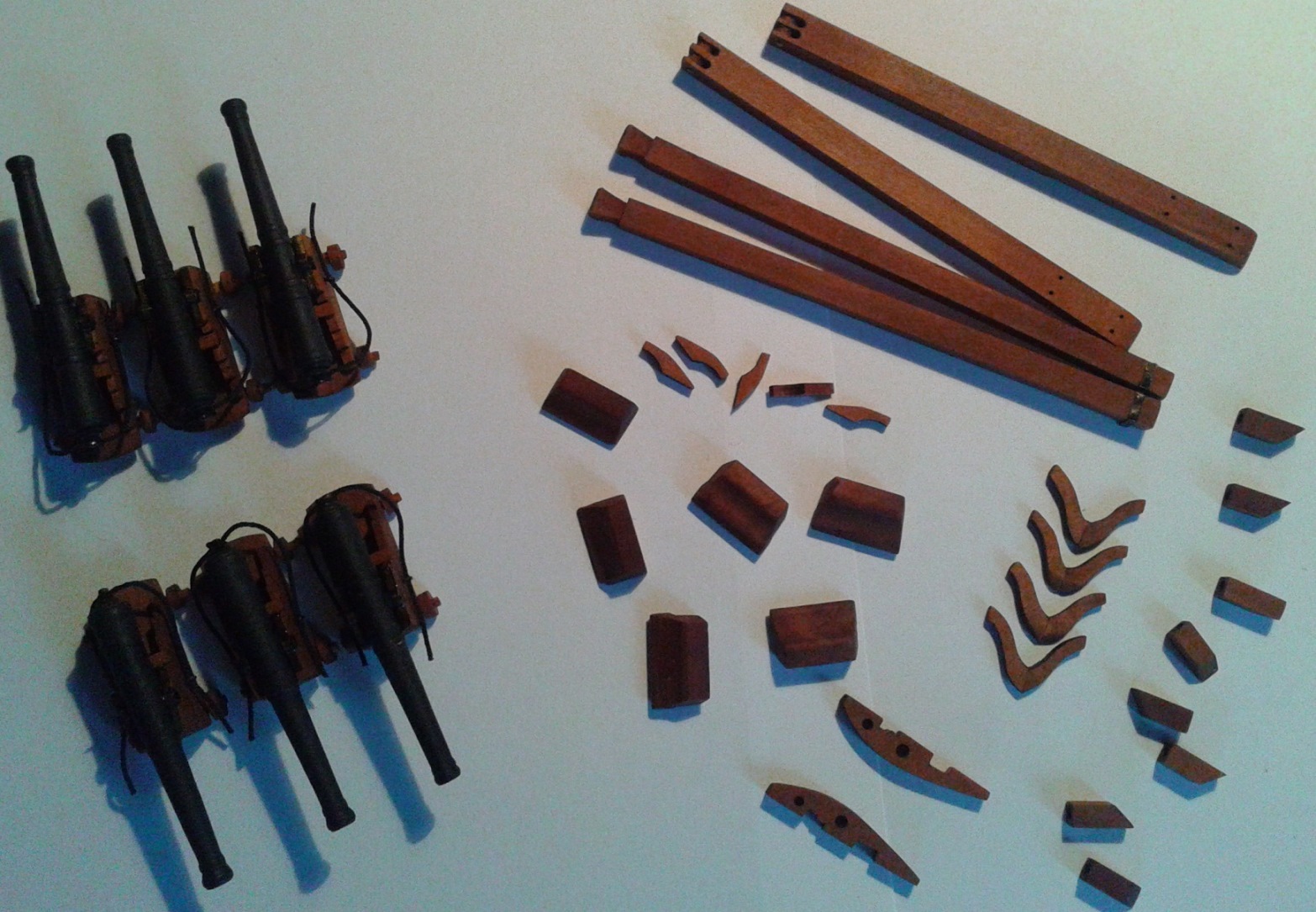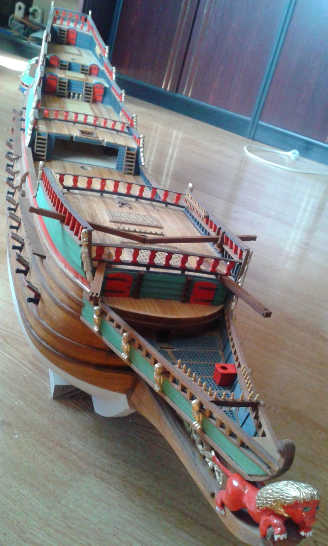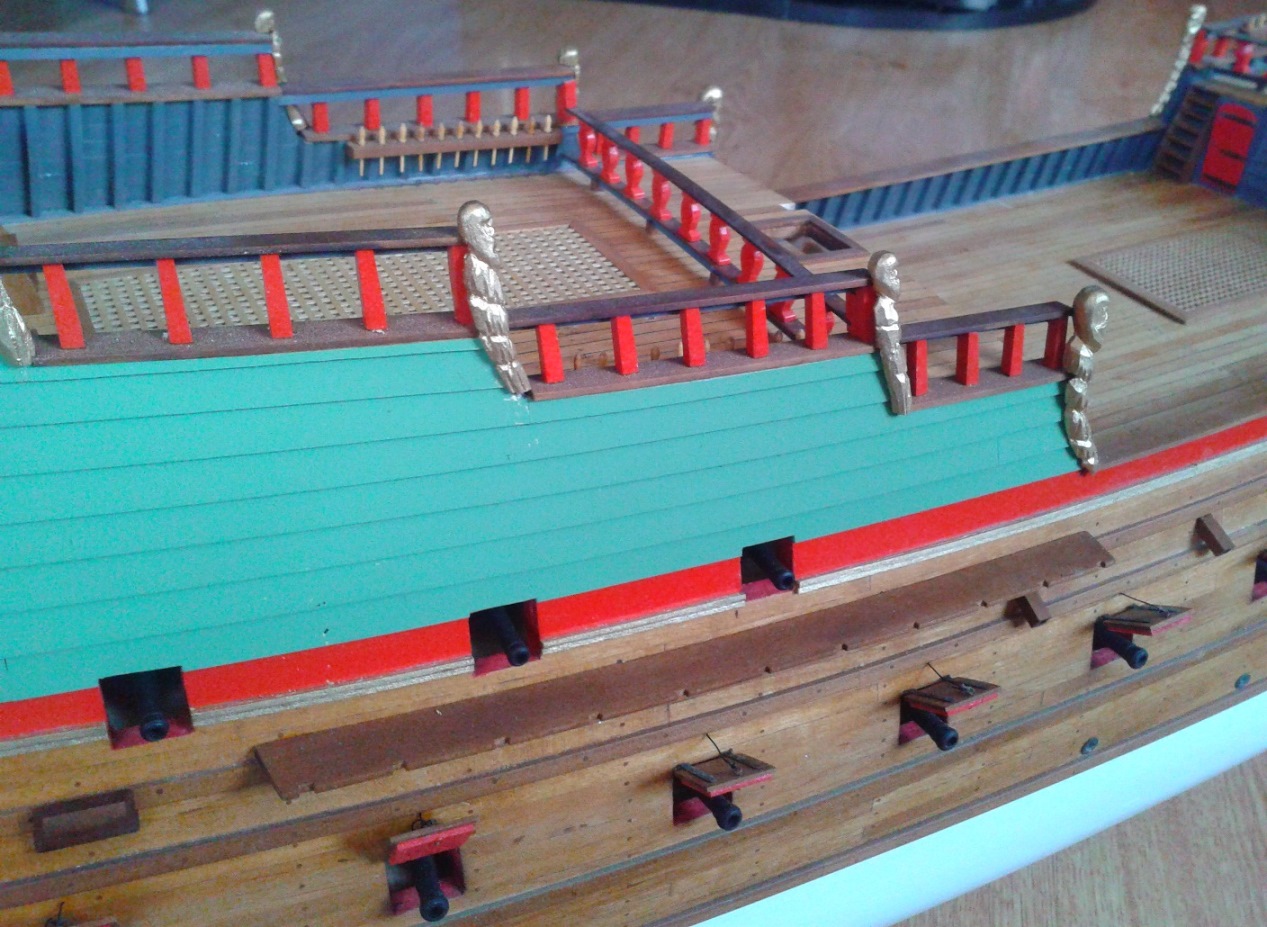 Witam po nieco dłuższej przerwie. Niemal każdą wolną chwilę poświęcałem na modelowanie, a że było ich niewiele, to i efekty skromne.Przyklejone na miejscach:Wykonanie pozostałych dużych elementów (szalupa, kotwice i latarnia) pozostawiam na później, jako przerywnik w czasie prac przy takielunku.