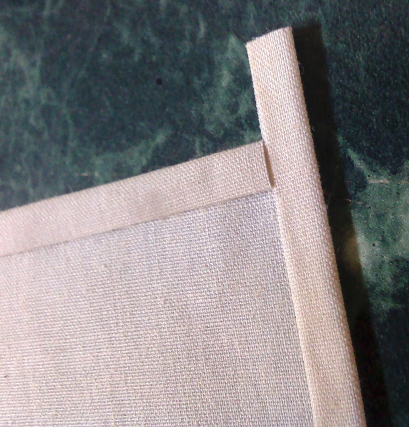 Krawędzie zaginam na kleju biurowym, który nie plami tkaniny i nie usztywnia zbytnio obrzeży.