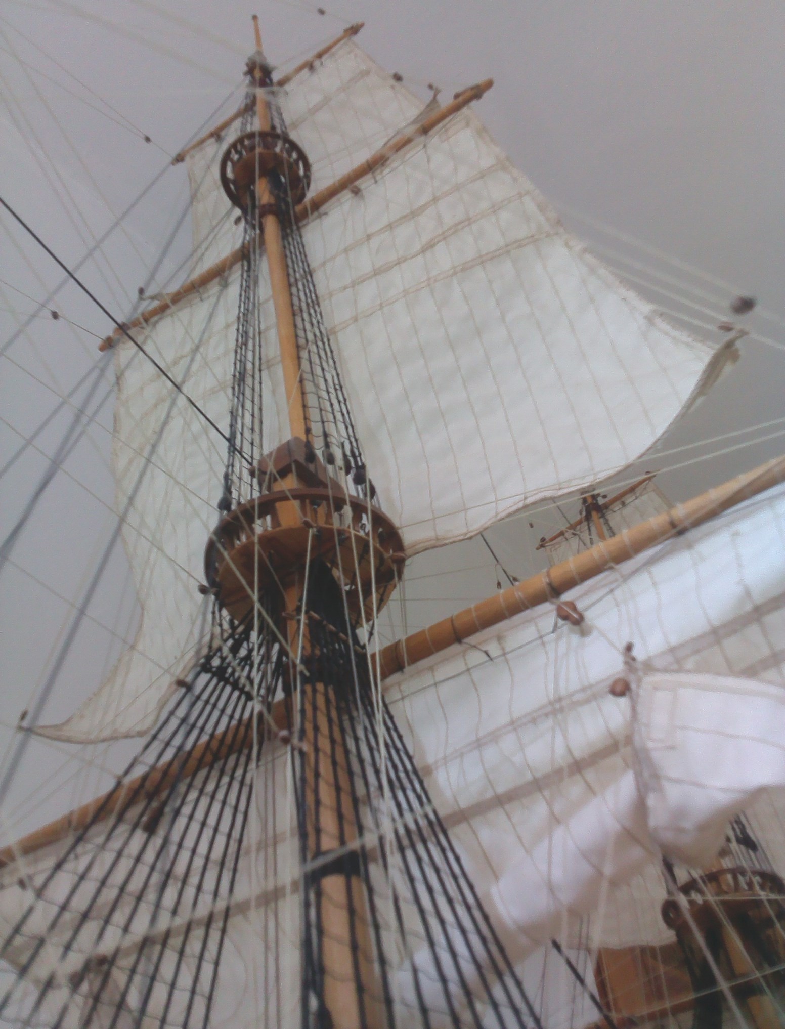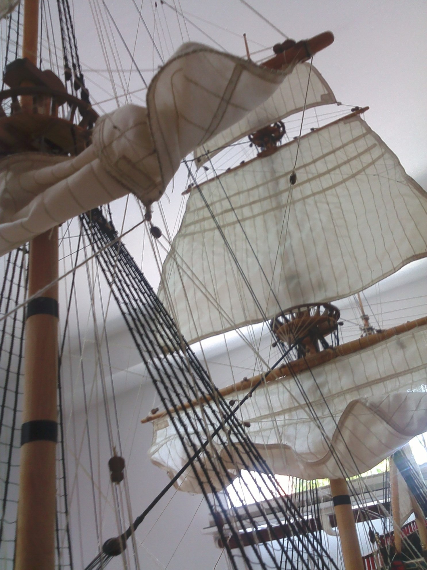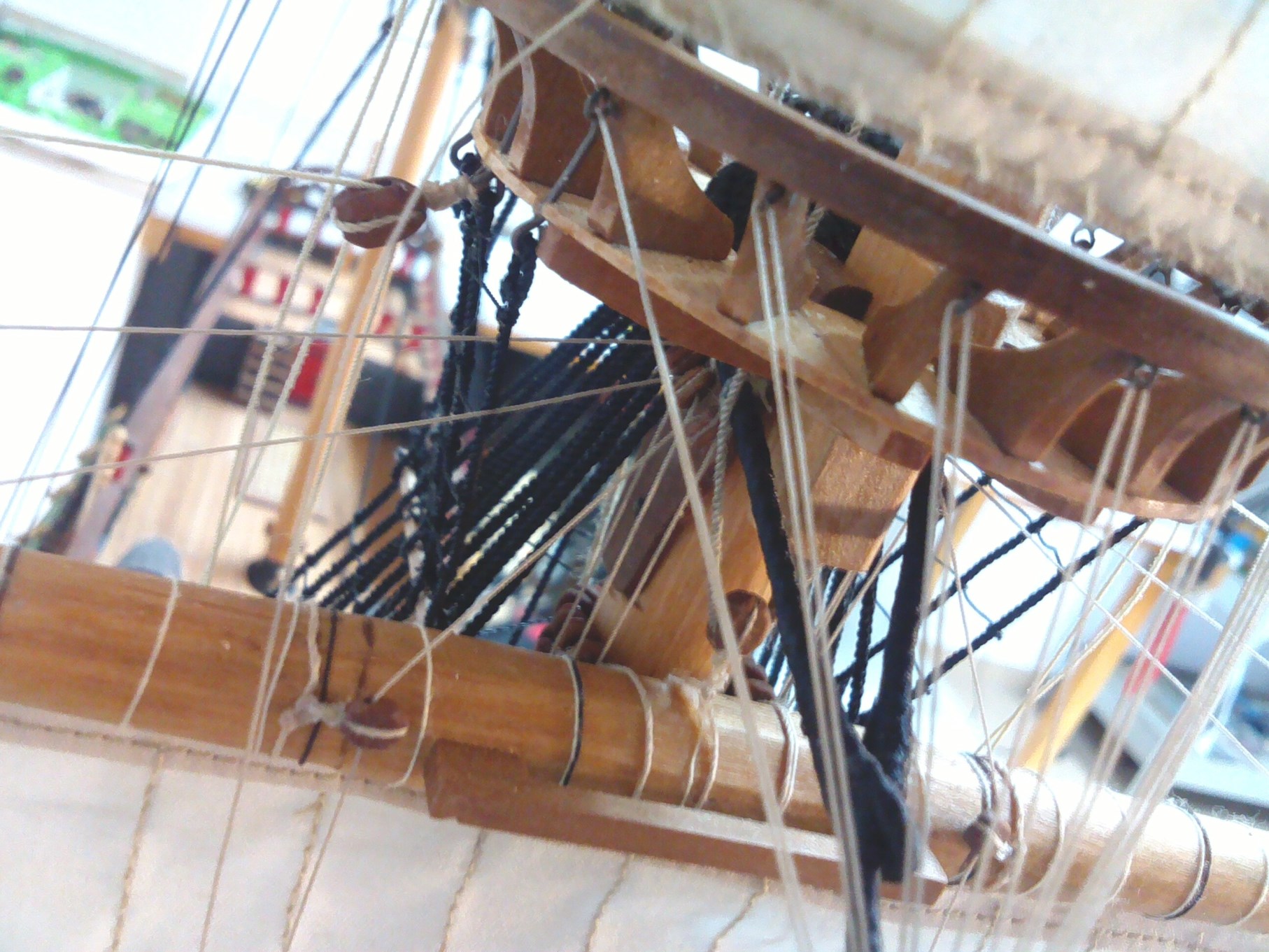 Witam. Prace przy olinowaniu stałym dobiegły końca. Było trochę problemów z odpowiednim naprężeniem głównie want. Niestety liny z nici poliestrowych zachowują się różnie w zależności od temperatury i wilgotności otoczenia. Nie wiem, jak to wygląda w przypadku lin bawełnianych, bo dotąd ich nie używałem. Parę zdjęć: