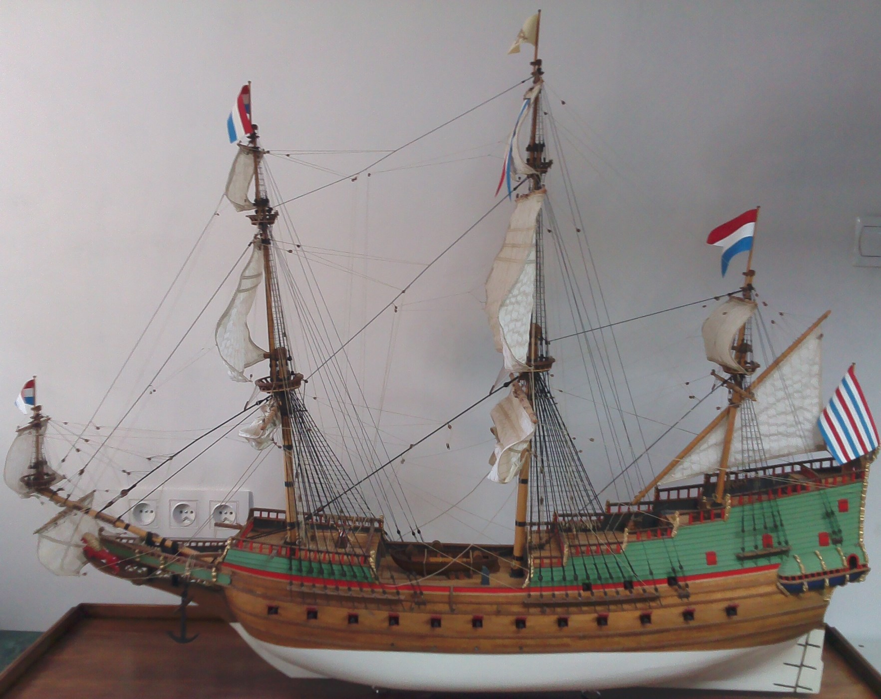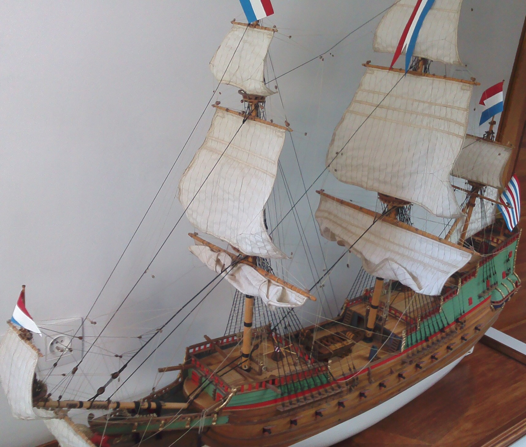 Można zauważyć też błędy dotyczące samego wykonania, np. pokłady (niejednolite odcienie klepek) i przede wszystkim żagle ( zbyt pomarszczone).