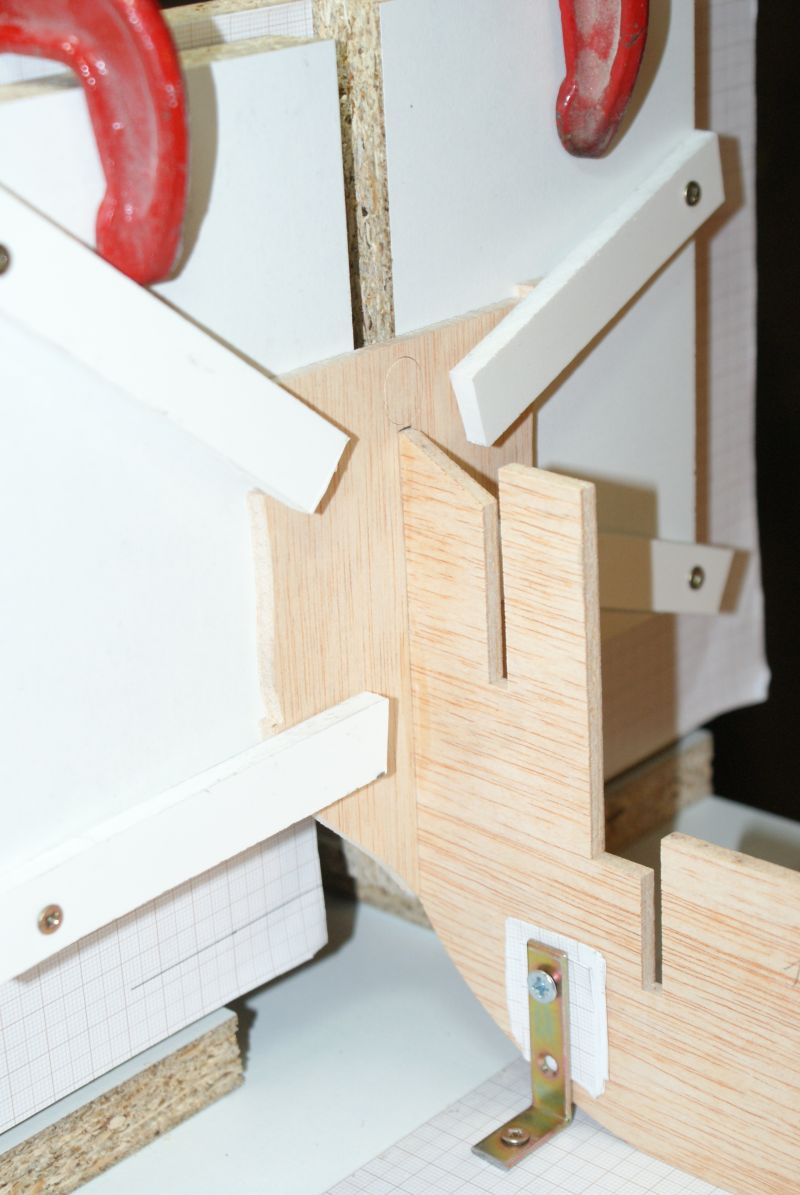 "Suwnica bramowa" (hehe to brzmi dumnie ;) ) ma zbyt małe wycięcie, wiec użyłem klocków dydtansowych przy ustawianiu wręgi 1 i 2.