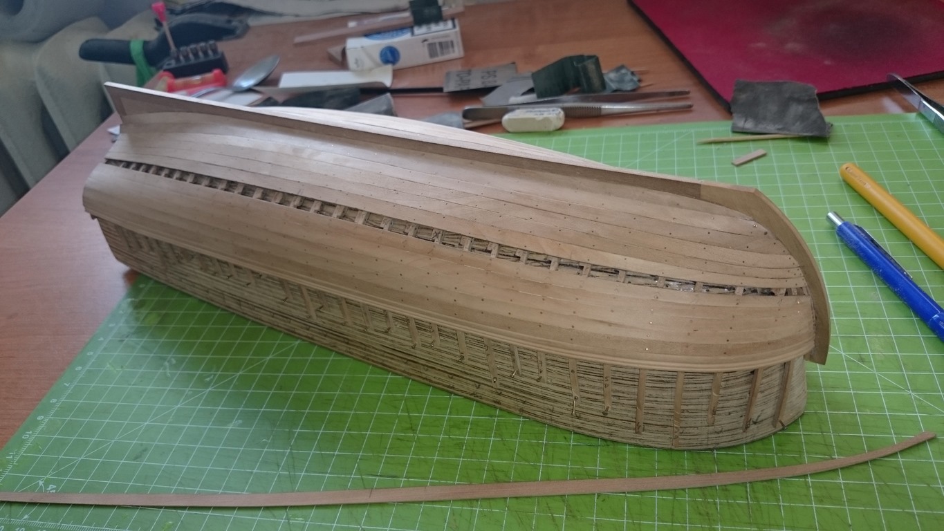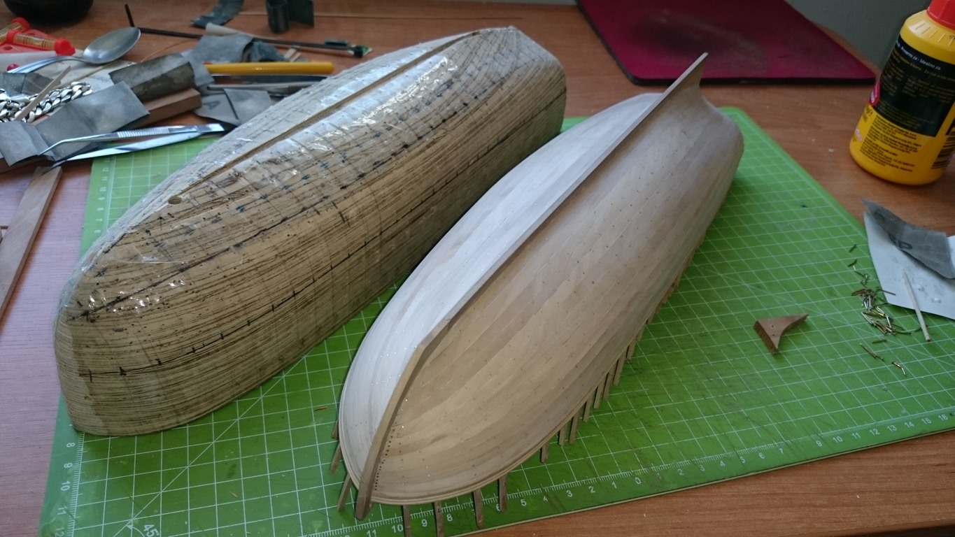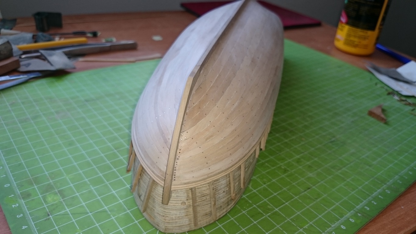 Rozumiem, że na stępkę będzie naklejone jeszcze lico? Widać też kilka niewielkich szparek między klepkami poszycia, ale zapewne uda się to zamaskować.