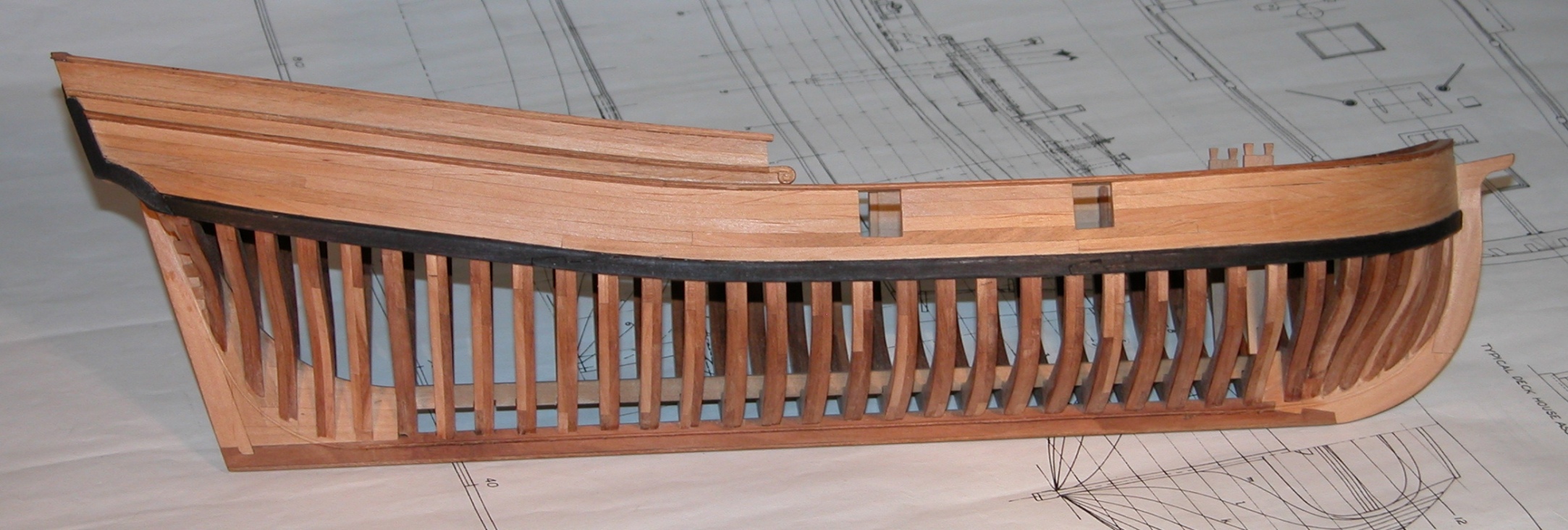 Lepiej jednak nie uczyć sie tej metody budowy Hahna gdzie ustawia sie wręgi tak, że kil jest u góry bo trudno ją wykorzystać przy innych planach niż jego autorstwa.