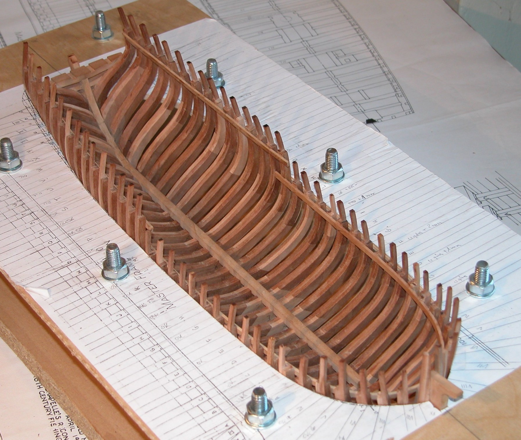Wkleiłem kolejne wręgi i nadstępkę.