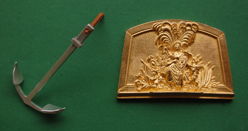 Co prawda takie detale jak kotwice, elementy ozdób pawęży, figury galionowe, koła sterowe czy artyleria, dodawane na początku kolekcji, są tak potrzebne na tym etapie jak młot pneumatyczny w modelarstwie, ale czymś trzeba skusić i przytrzymać jak najdłużej ;), więc skoro są, to wykorzystam je do swoich celów 8-)