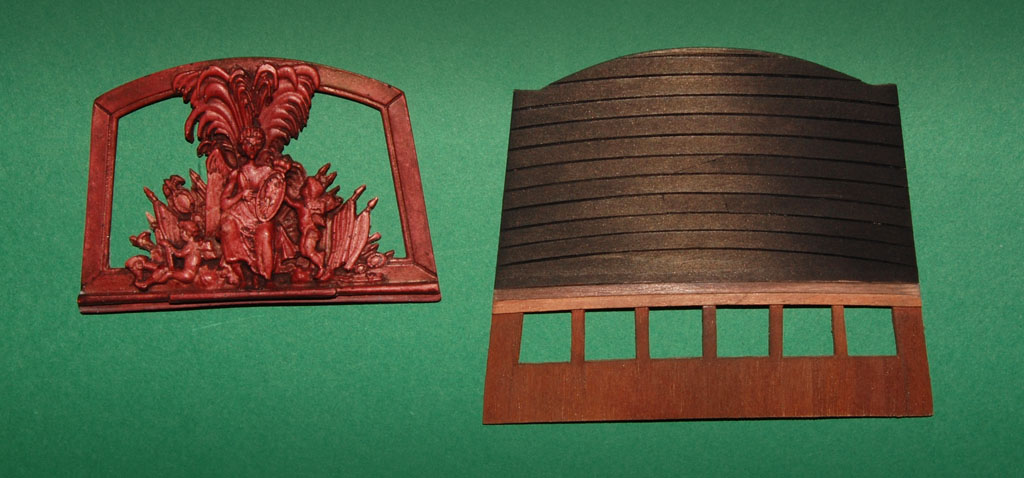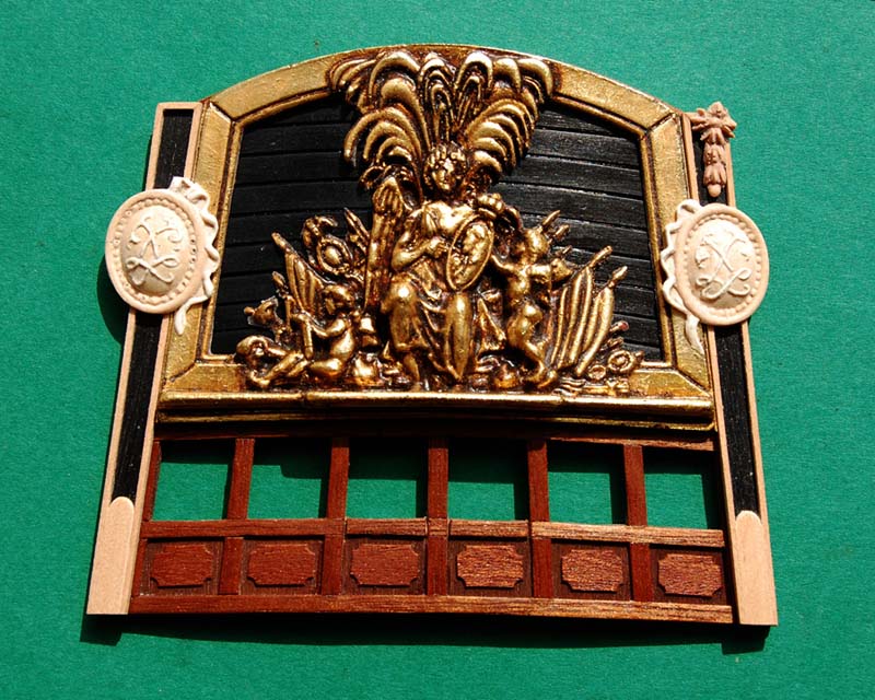 Ciekaw byłem, czy da radę zbudować model od... ozdoby pawęży czyli od rufy, czyli z d... strony :D. Teraz z perspektywy czterech miesięcy (model budowałem od pocz. kwietnia do lipca ub.r) mogę z całą odpowiedzialnością stwierdzić, że da radę, ale... .