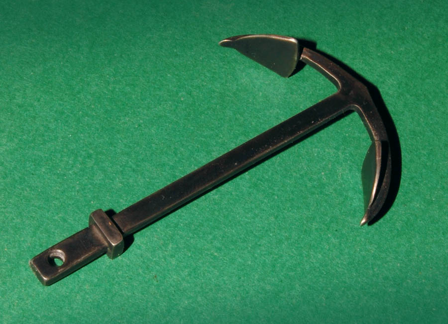 Kotwicę poczerniłem (naniosłem pędzelkiem moją Oksyblack - oksydę na zimno, na kilka minut). Po umyciu wodą z mydłem i wytarciu czerń się trzyma, i ma lekki brązowy odcień.