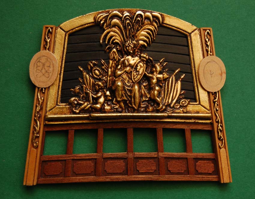 Całkiem niedawno ukończyłem dekoracje burtowe do galeonu, to niejako z rozpędu postanowiłem "zagospodarować" ozdobę pawęży. Nie będę ukrywał, że ta ozdoba zainspirowała mnie do całkiem nowego projektu, ale o tym sza, aby nie zapeszyć ;)