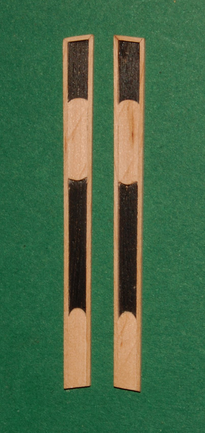 Z obłogu brzozy wyciąłem listwy - fazując widoczne krawędzie i pomalowałem czarnym tuszem kreślarskim, tu dodam, że bardzo podoba mi się efekt "spolerowanego" tuszu (i fazki na łączeniu listew).