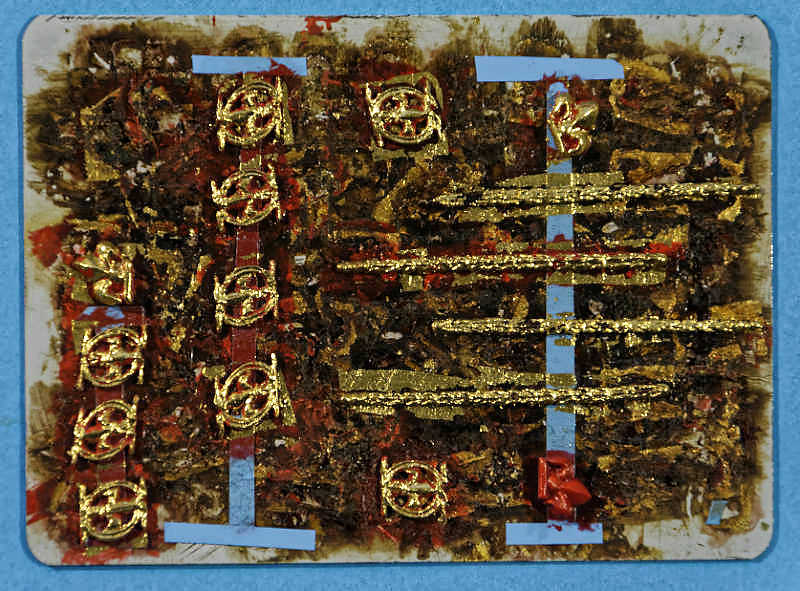 Po sześciu miesiącach od wykonania ornamentów ozdób balkonu (przerwa była dłuższa od dotychczasowej budowy) przygotowałem je do złocenia, czyli pomalowałem akrylowym podkładem i położyłem mixtion.