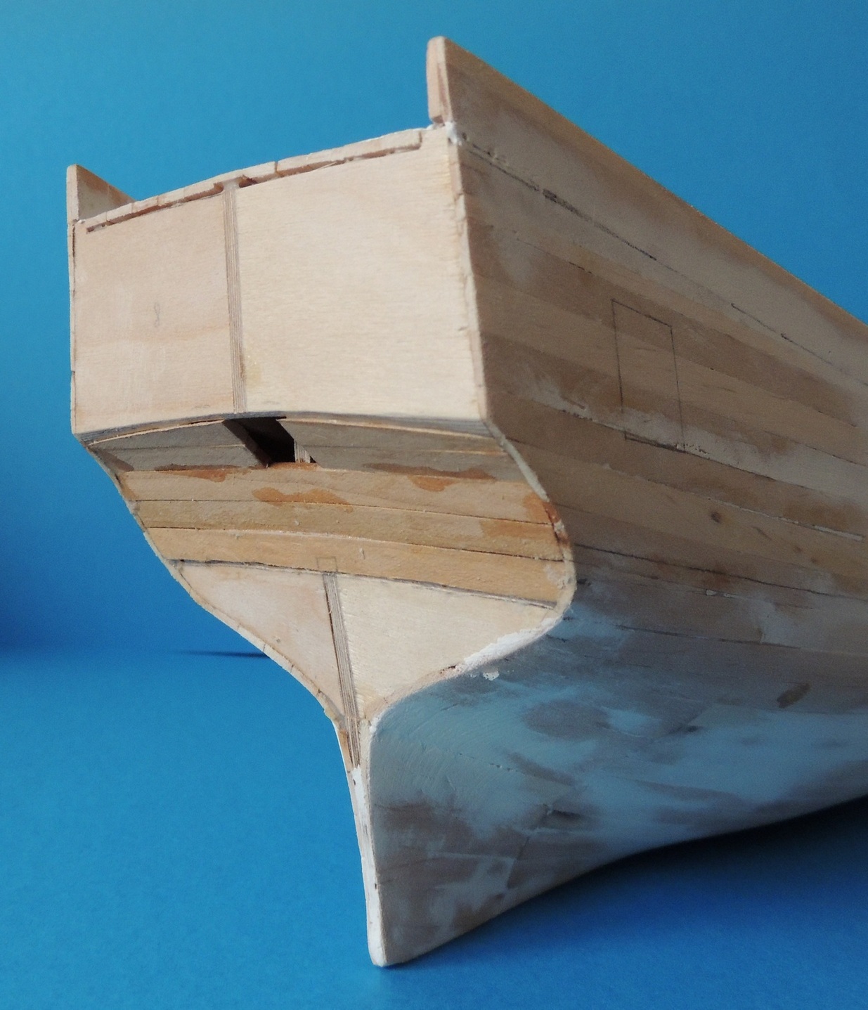 Cześć. Po troszku przybywa :) Wytrasowałem otwory na burtach i teraz zająłem się rufą.