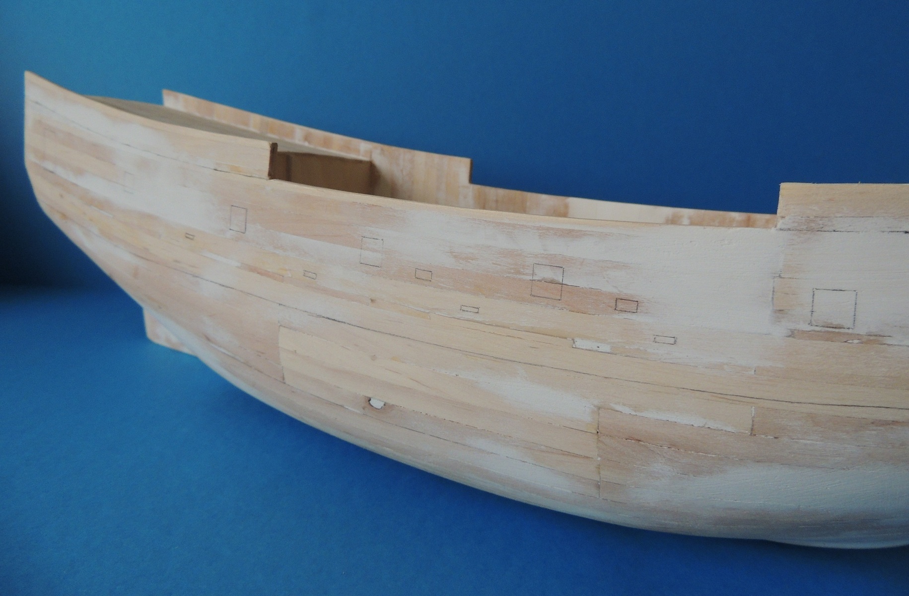 Cześć.Prac ciąg dalszy. Nadburcia od wewnątrz zostały pogrubione drugą warstwą listewek. Kadłub wyszlifowany, później zaszpachlowany i znowu wyszlifowany. Co nieco też wytrasowałem.