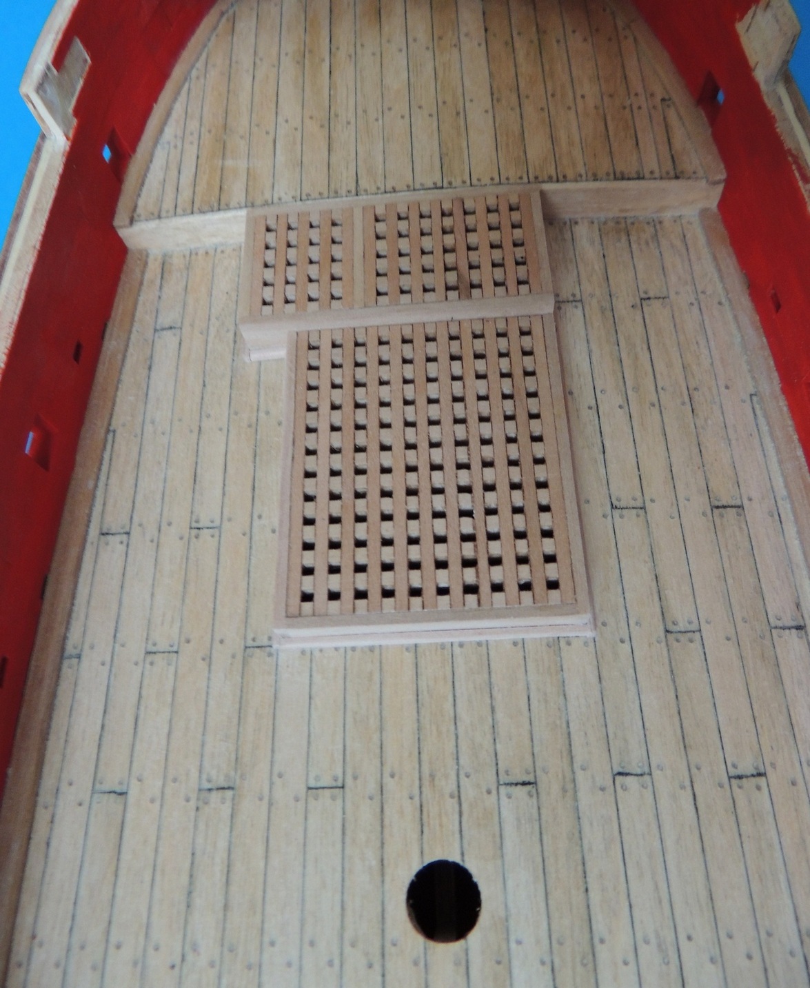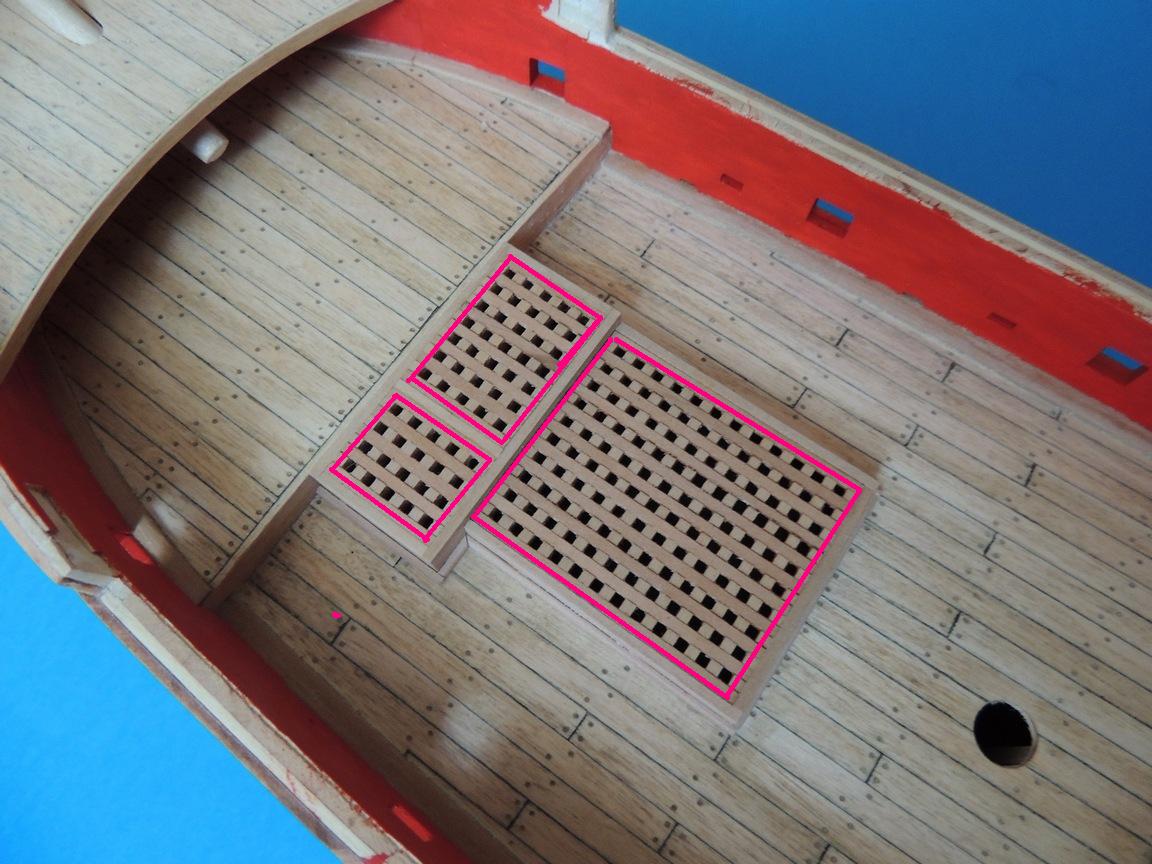 Witajcie. Tak to wygląda na dzień dzisiejszy. Pokłady gotowe. Na zdjęciach widoczny szablon małego pokładziku dziobowego i szablon gretingów.