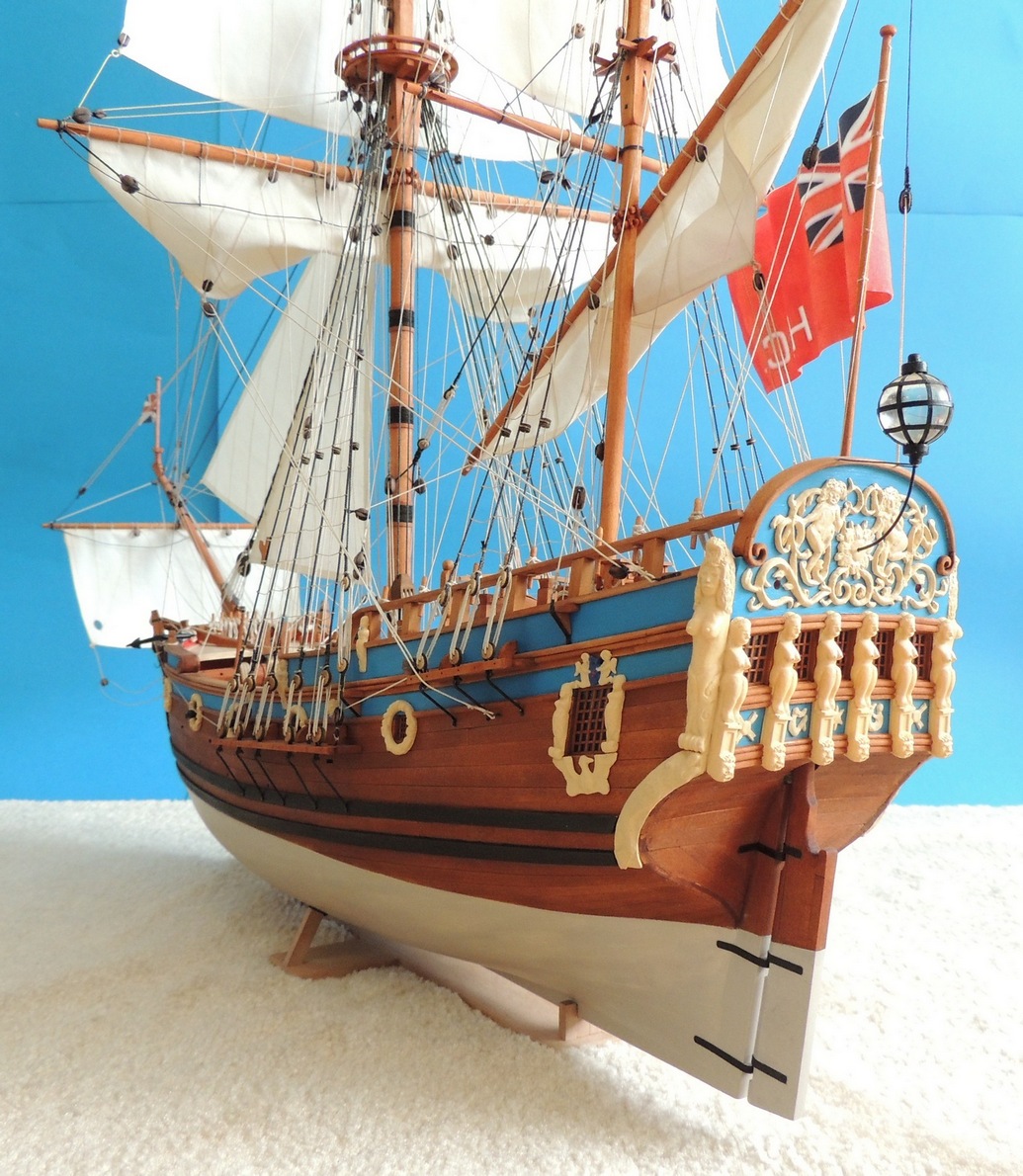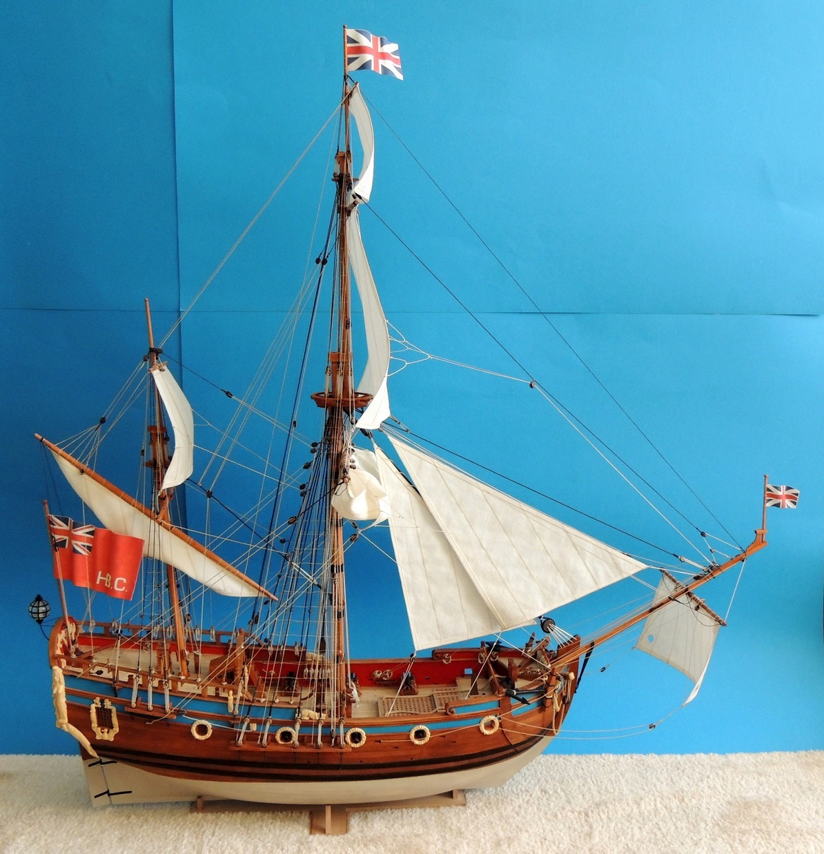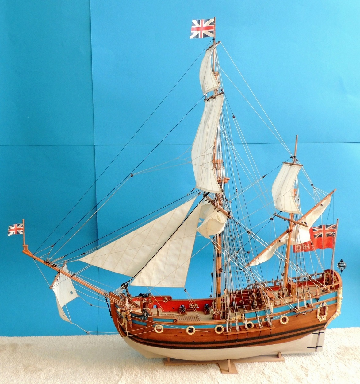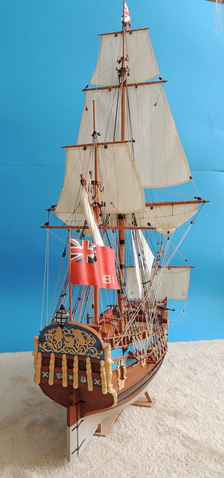 Ostatni żagiel zawieszony. Brasy też. Olinowanie gotowe :D Doszedł jeszcze taki mały drobiazg na wancie,widoczny na ostatnim zdjęciu. Nie wiem do czego służył, ale na replice jest, więc i ja go wykonałem.