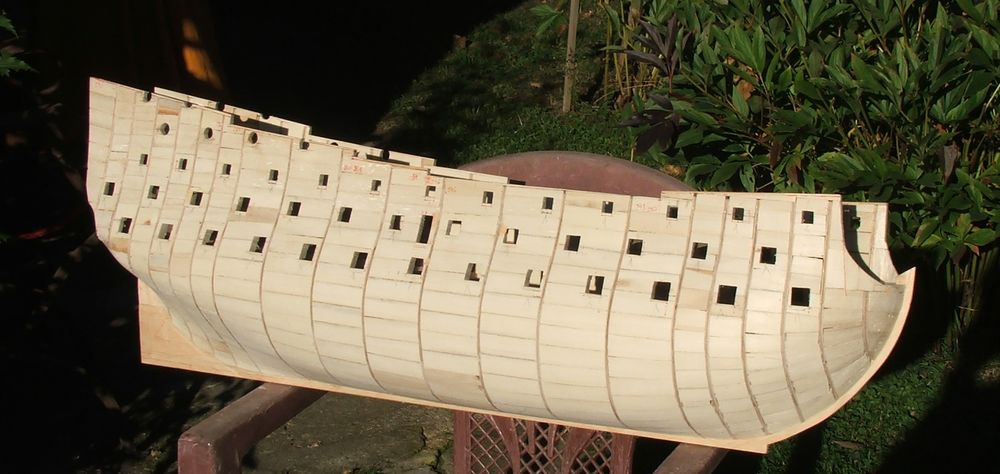 Rozmieszczenie i wykonanie otworów okazało się wielkim problemem .Każdy pomiar był niepowtarzalny W końcu udało się i powycinałem otwory .Ale dalej coś nie grało.Powód był banalny .Stół na którym robiłem obmiary okazał się wklęsły o 6mm po środku .Wymieniłem blat i zabawa od nowa .Otwory musiałem częściowo zakleić i rozpiłować .Trwało to kilka tygodni ale jestem już na prostej .Teraz ustalenie i mocowanie bukszprytu i masztów .Potem pokłady i poszywanie.R