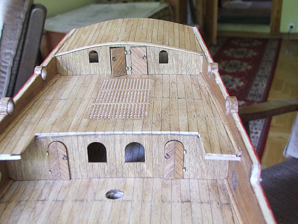 Mimo upałów i atmosfery urlopowej coś się dłubie.Ścianki pokładów już są.Wykonane ze sklejki 1mm a drzwi oklejone listwami.Teraz ramy okienne i czas na zdobienia .Brrr...R