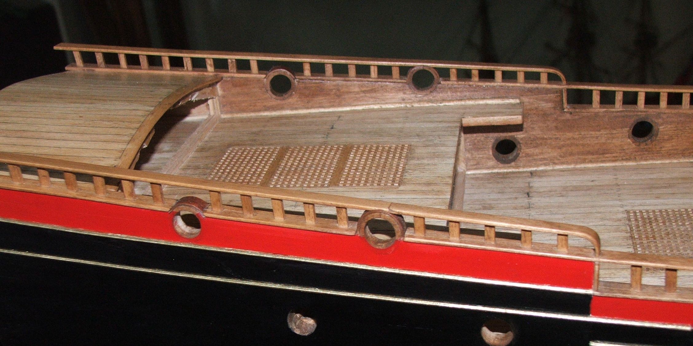 Przyszła kolej na relingi które pokrywają niemal całą burtę.Kłopotliwa sprawa.Zrobiłem sobie wybijak znacznik o grubości belki.W moim przypadku 3x2mm zakończony jaskółczym ogonem .Uderzeniem odznaczam miejsce gdzie będzie belka i wycinam dłutem.Po naklejeniu listwy na burtę wybijakiem pogłębiam otwór pod belkę na gł. ~3mm. Beleczka wchodzi ciasno i jej nie kleję.W razie potrzeby mogę ją wsuwać i wysuwać .Te rozwiązanie pozwoliło mi wykonać relingi bez większych problemów i poprawnie .Pracy i tak było masę .Pozdr.R