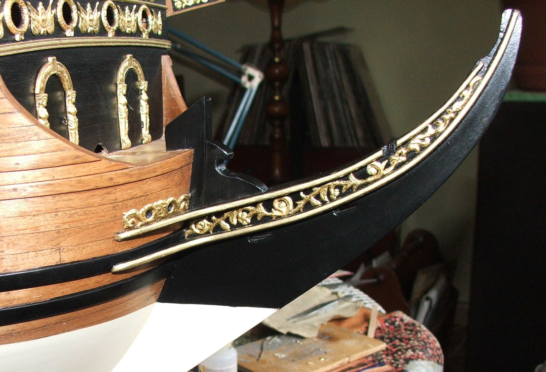 Witajcie.Kosz dziobowy zakończony .Sprawił mi masę problemów i zajął masę czasu.Wygląda prosto ale spasowanie tych wszystkich krzywizn i rzeźb było dla mnie wielkim wyzwaniem .Teraz pora na artylerię .Pozdr.R