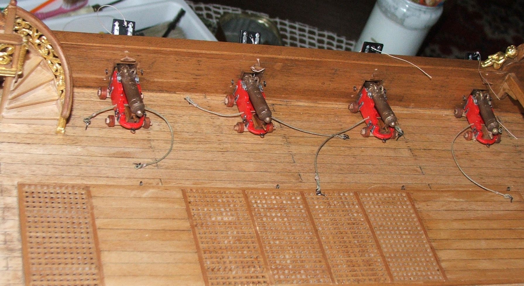 Witam .Powoli kończę uzbrajać Karolinę .Lufy jak i lawety odlane z żywicy ,potem malowane i patynowane .Jeszcze do uzbrojenia górne pokłady .Pozdr.R