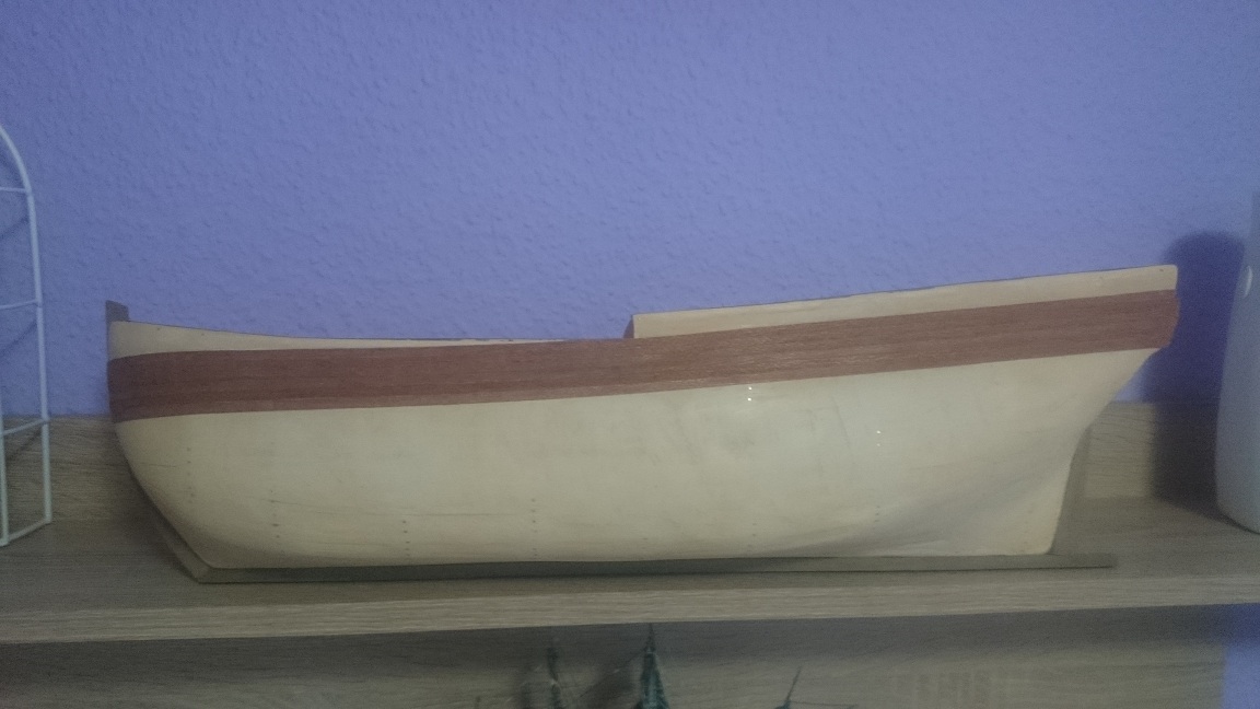 Nie mam pojęcia czy tak powinno wyglądać docinanie tych listewek na dziobie, więc musiałem improwizować.<br />Przeczesywanie internetu nie dało mi jasnych odpowiedzi, ale coś podpatrzyłem i wyszło jak wyszło.<br /><br />Zdjęcia z przed szlifowania więc wygląda trochę niechlujnie;)