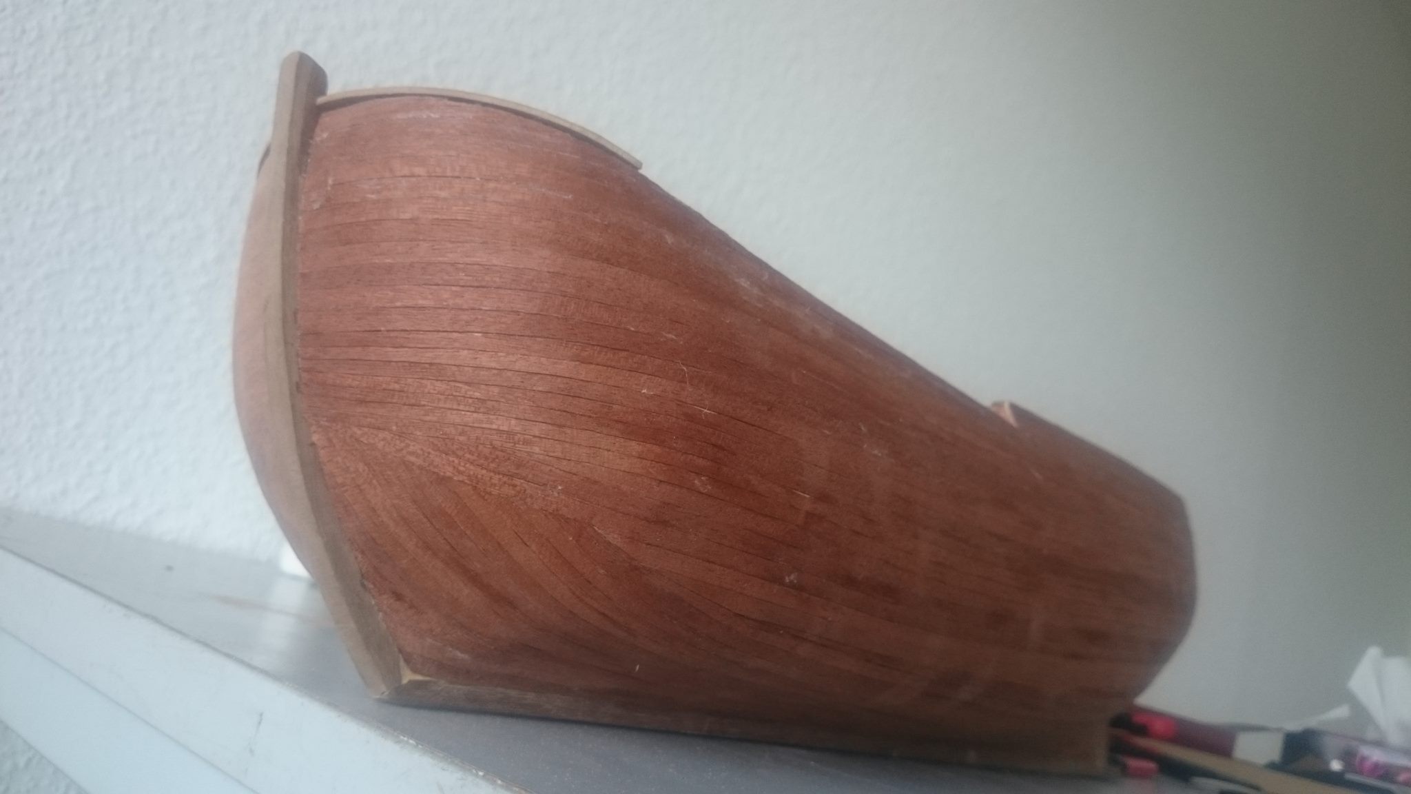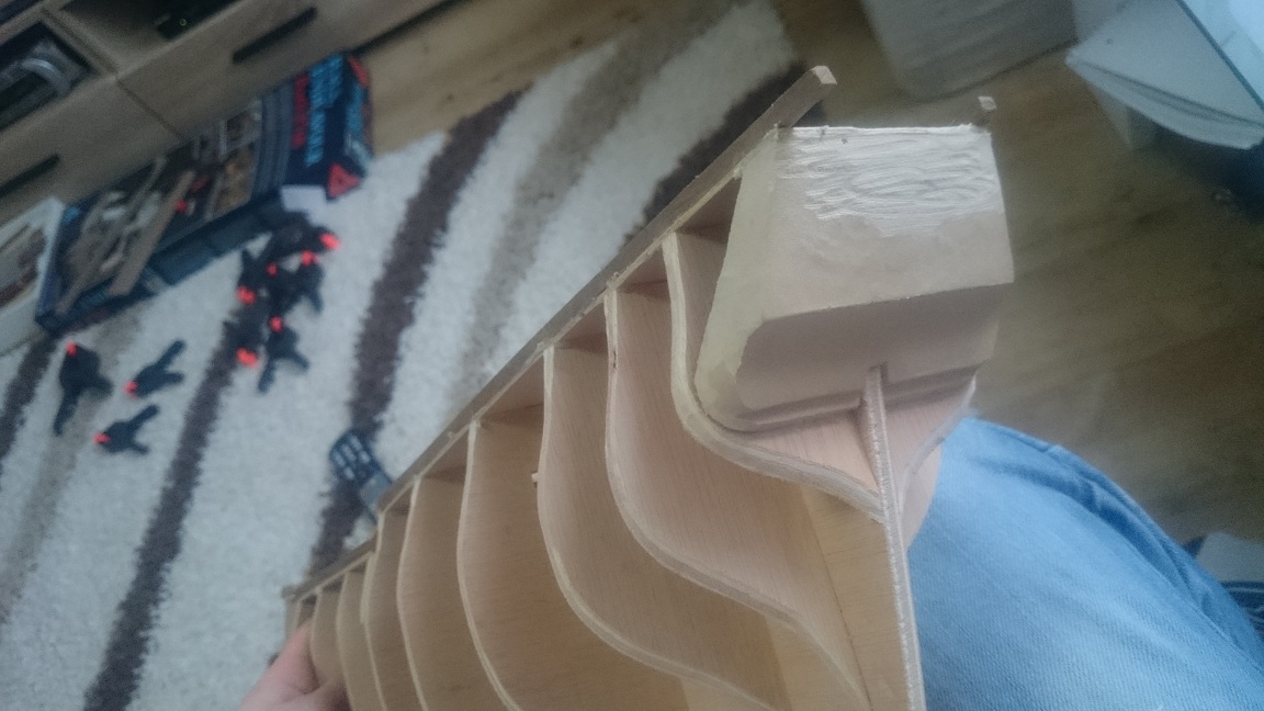 Teraz burty. Miałem duży problem z tymi ostrymi zagięciami bo deseczki zwyczajnie pękały.. namaczanie, grzanie lutownicą;x i parowanie średnio pomagały, ale zawsze na tyle, że udało się dokończyć.