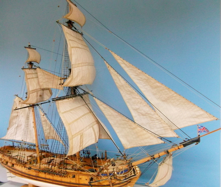 Chciałem, żeby żagle były dobrze "wypełnione" wiatrem i trochę mnie chyba poniosło. W efekcie grotżagiel nieco koliduje ze sztakslem, ale nie chciałem z niego rezygnować. :)