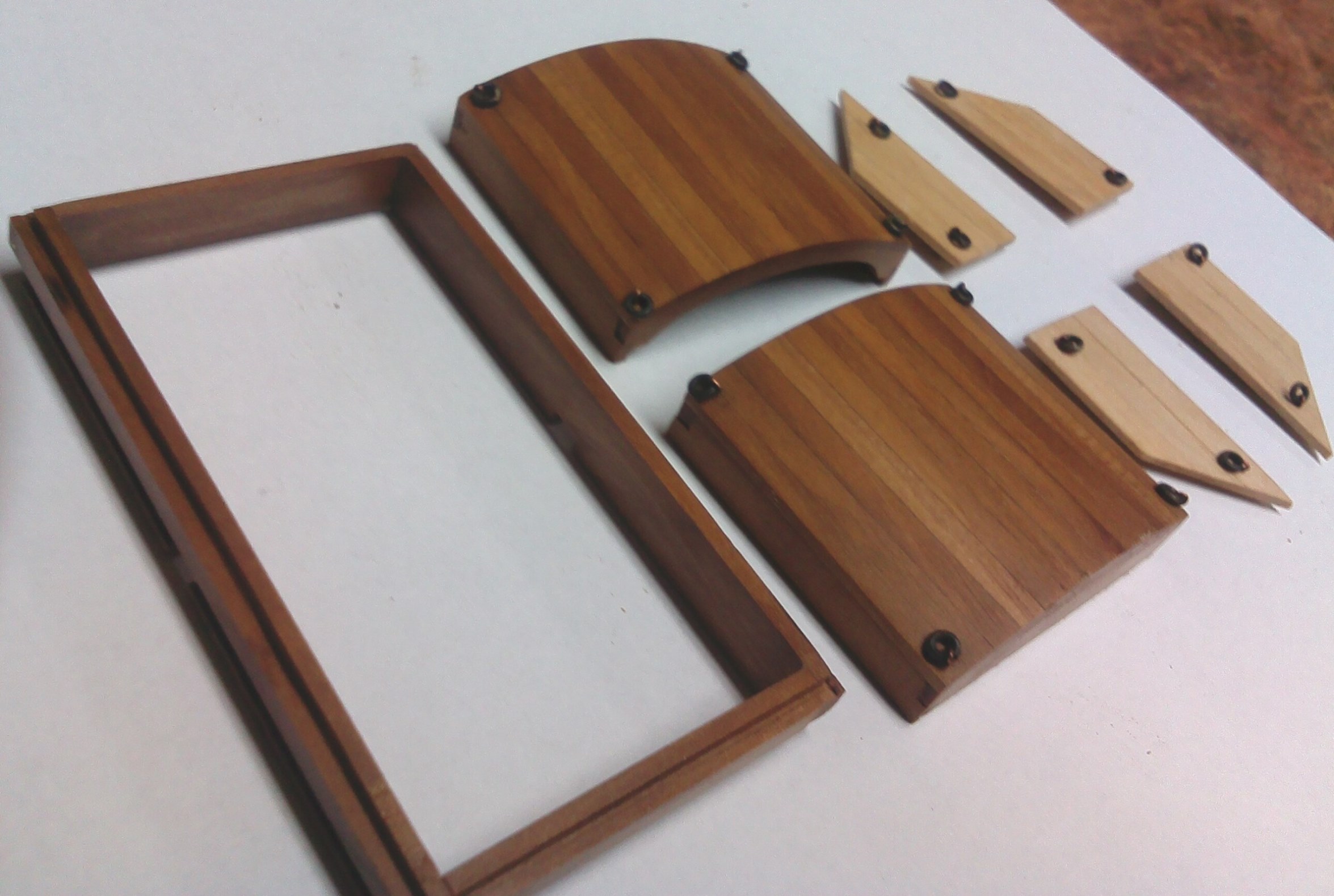 Pompa pokładowa, jedna z czterech:Konstrukcja stanowisk moździeży. Te elementy są wklejone na stałe:A te są demontowane:A to zakryte stanowisko, a także belka (kotwiczna?) i trapy: