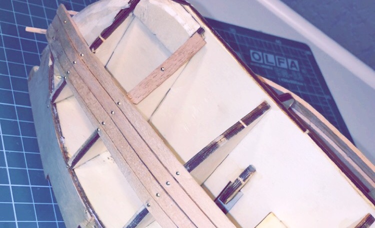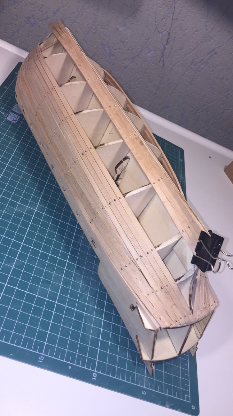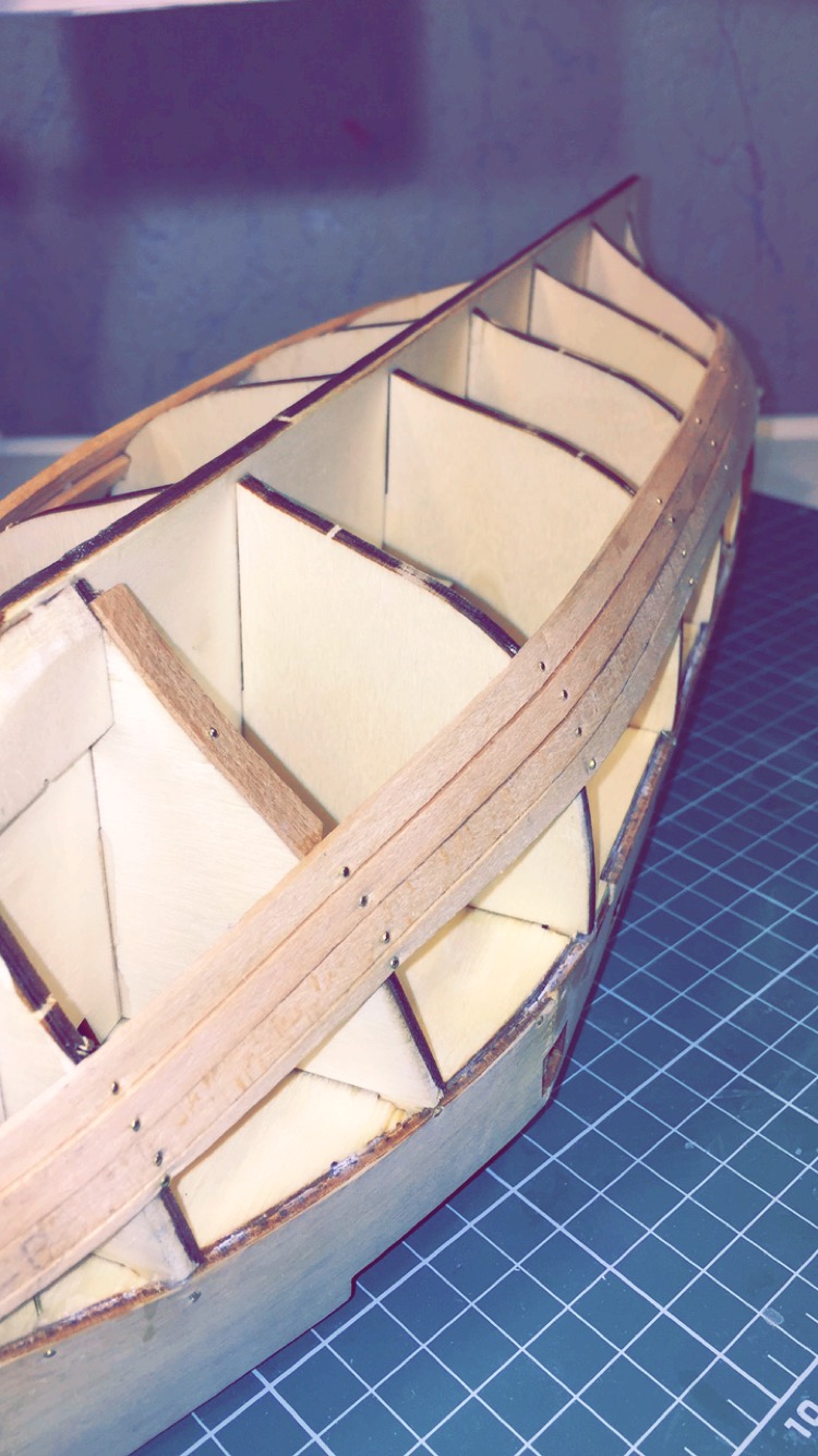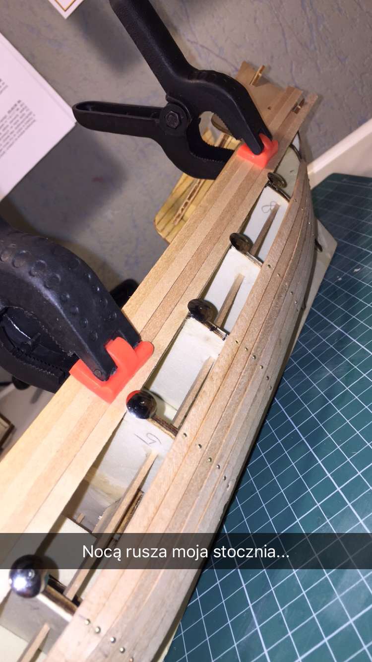 Dzięki Krzysiek za podpowiedź, wręgi podszlifuję. Jak na razie żadna z listewek nie jest nadłamana, lekko krawędzie burt ( mogłem zaczekać na giętarkę ) , ale to pokryje warstwa poszycia.