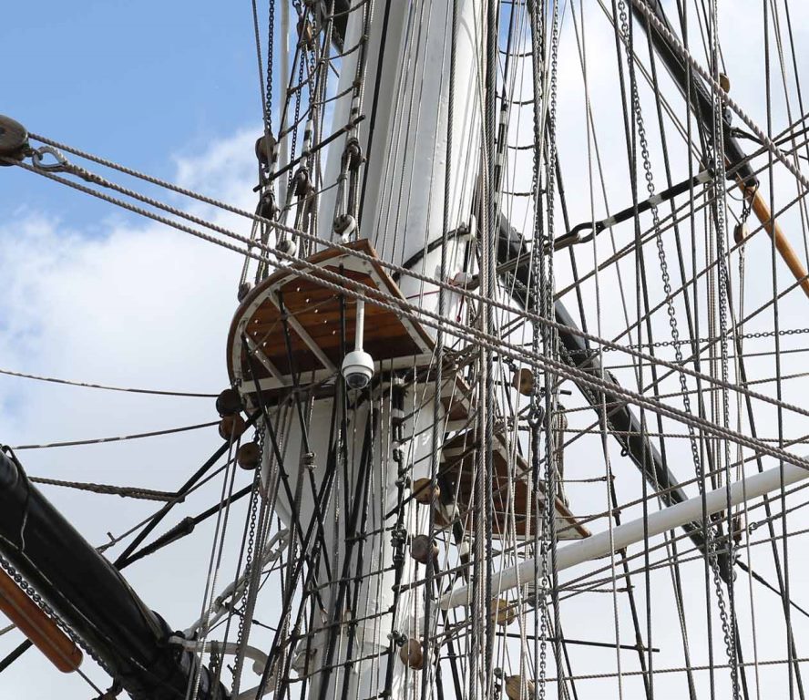 Kazik, czy aby na 100% ten sztag tak idzie? Leży na marsie (w realu by go wyłamał), powinien iść przez platformę marsa, jednocześnie uciskając dyby i piętę stengi. Ale mogę się mylić.