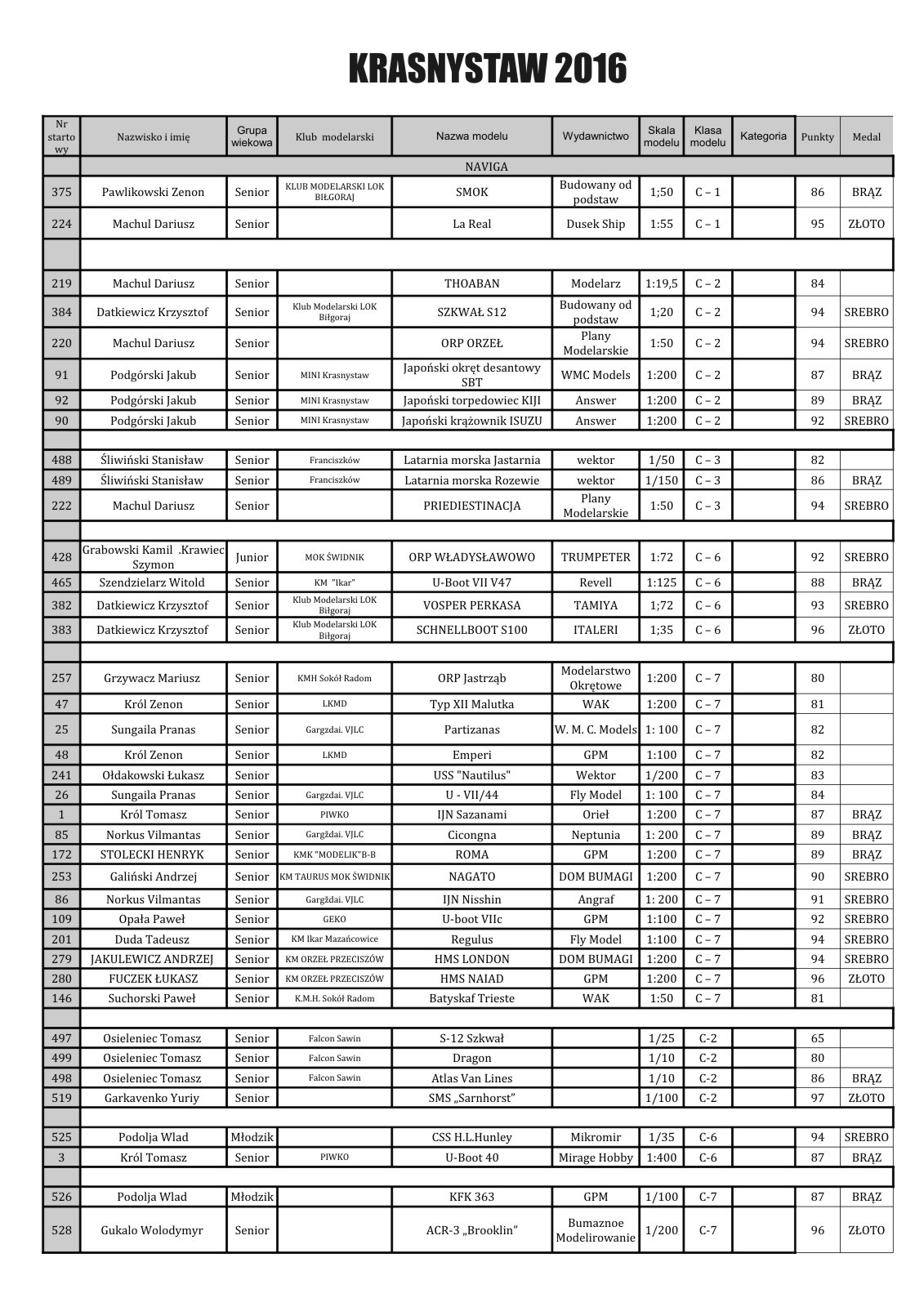 Witam w dn.25-27 listopada 2016 r. w Krasnymstawie odbył się XVI WOJEWÓDZKI KRASNOSTAWSKI KONKURS O GRAND PRIX “MAŁEGO MODELARZA”, KONKURS MODELI KARTONOWYCH, PLASTIKOWYCH ORAZ