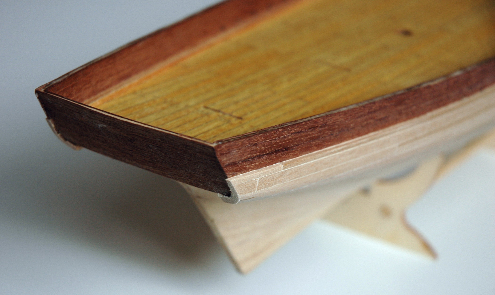Przystąpiłem do dalszych prac, wykończenie burt i druga warstwa poszycia. Przy okazji odkryłem liczne błędy w instrukcji oraz zestawieniu elementów wydawnictwa (na szczęście w pudełku oprócz zestawienia elementów w języku angielskim z błędami było też zestawienie poprawne w języku włoskim).