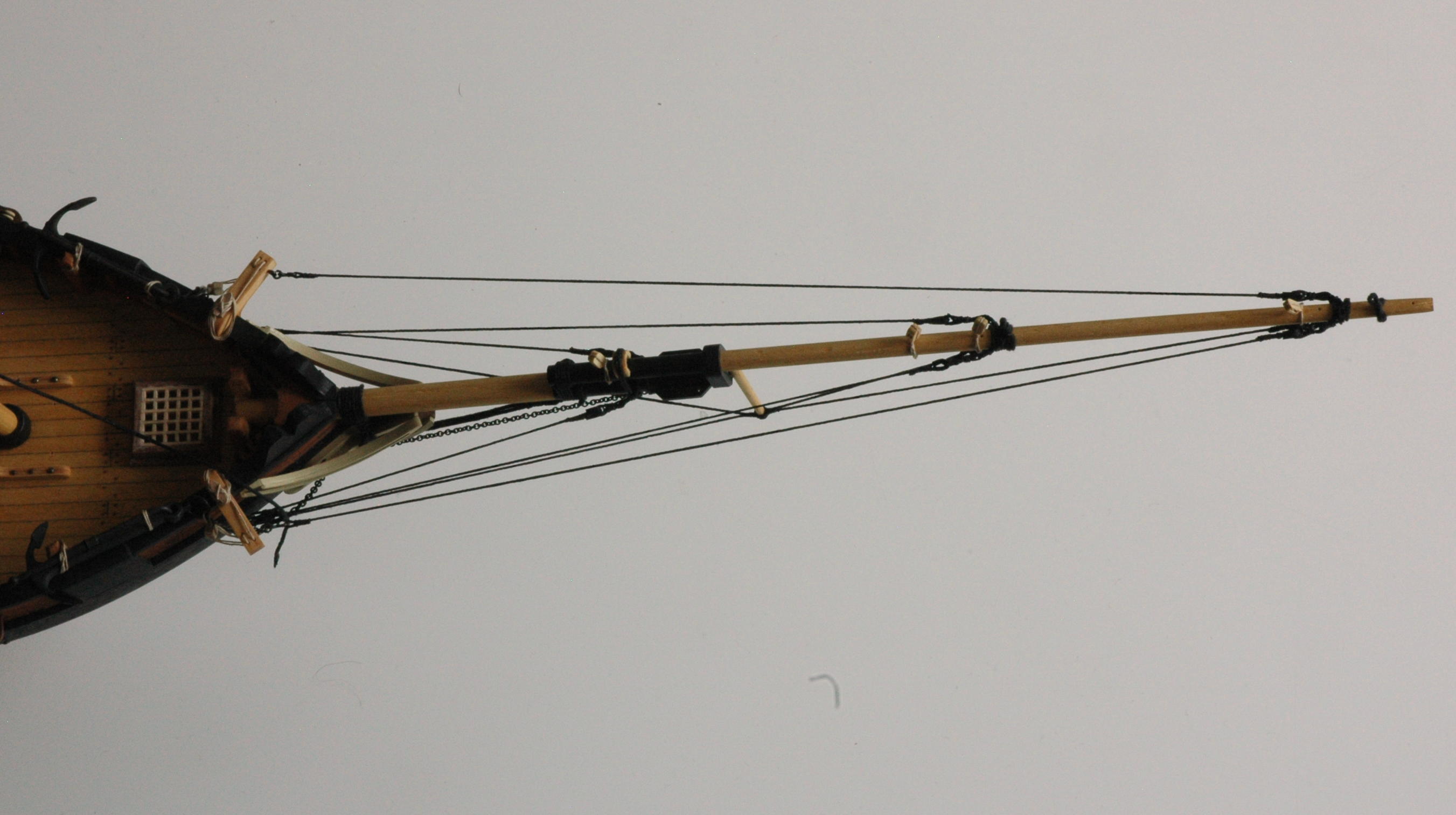 Wróciwszy do modelu wykonałem olinowanie stałe bukszprytu.