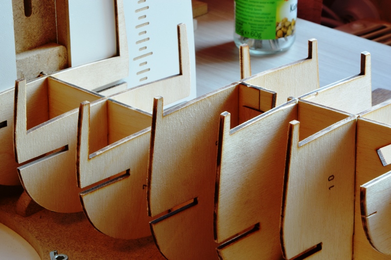 Tylko jest kłopocik. Kiedy rozsunąłem podłużnice, ich krawędzie nie za bardzo chcą licować z wręgami.