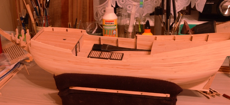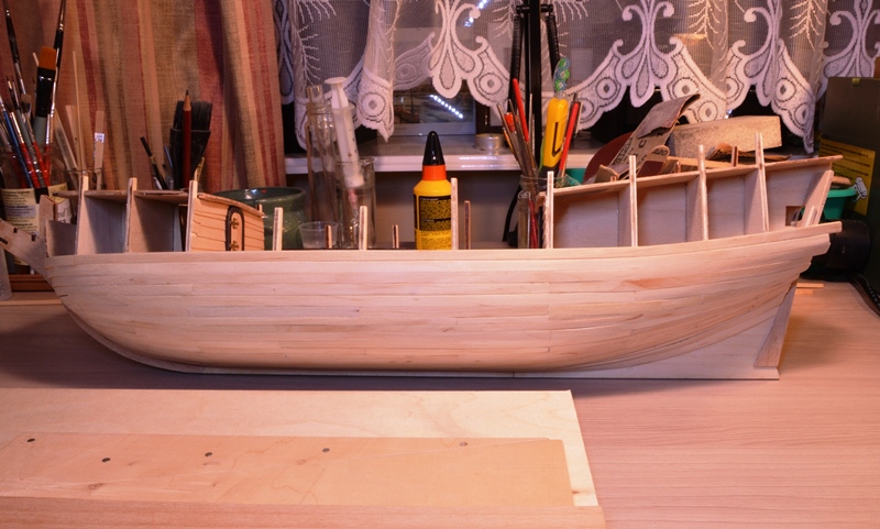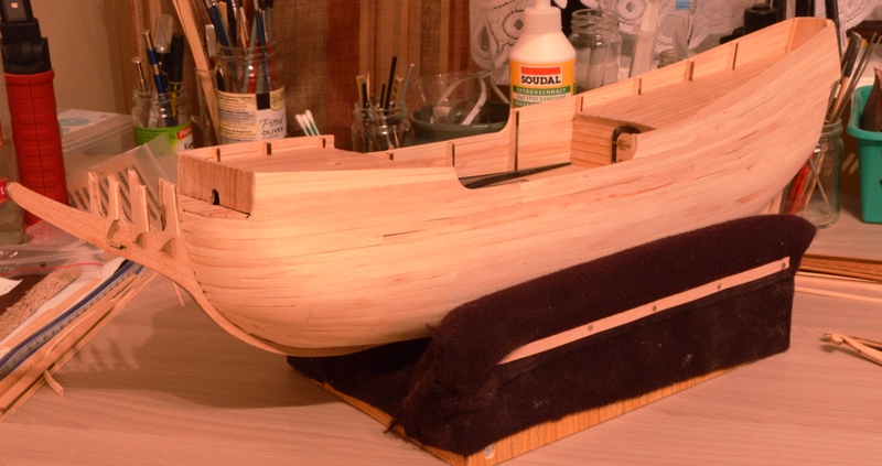 Na powyższej fotce pociągnąłem nawet dwie planki daleko do rufy. Tak mi dobrze szło. I zaczęły się kłopoty :mrgreen: Nie miałem na rufie miejsca dla następnych planek. Rozpoczęła się walka.