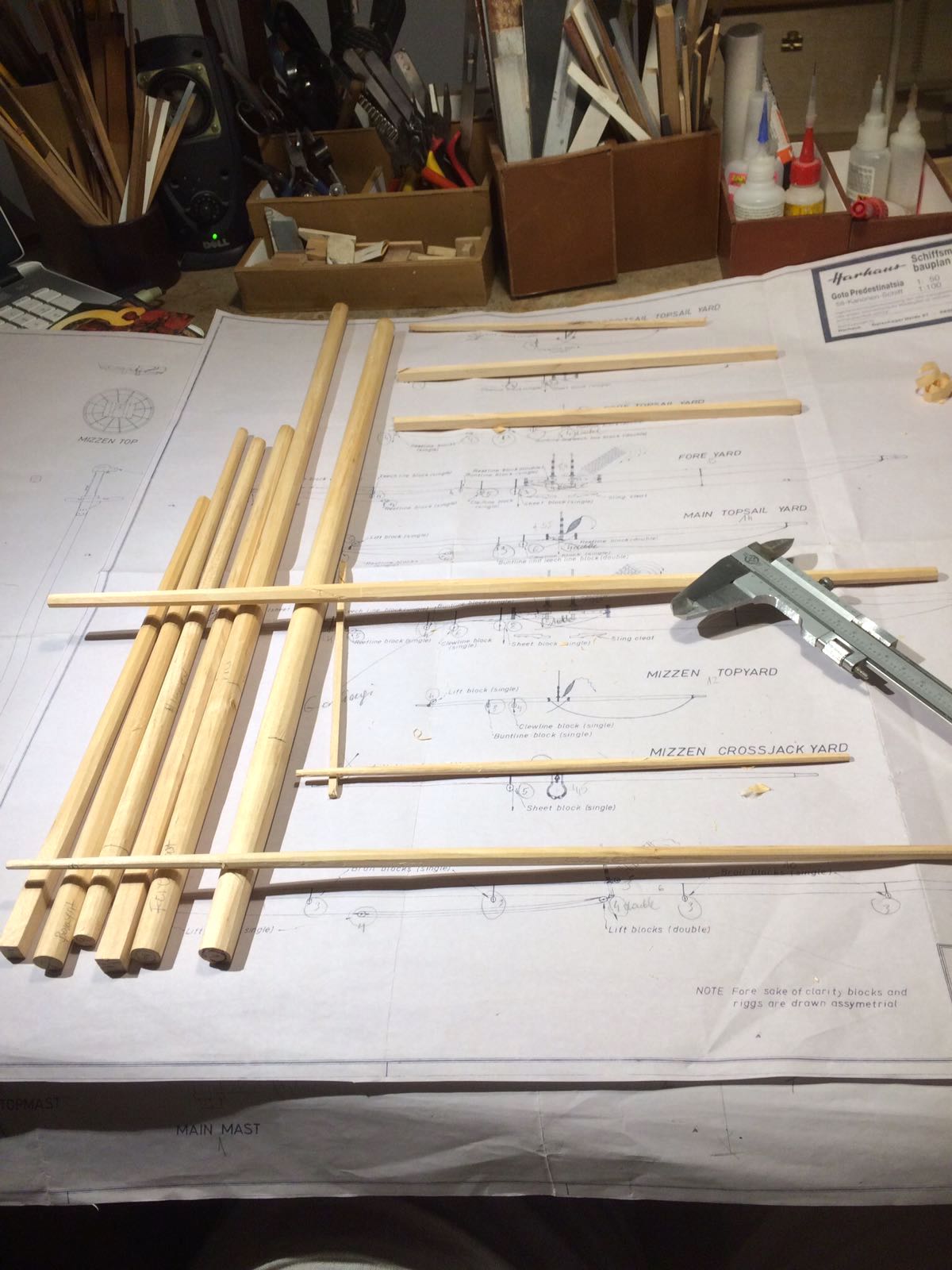 Cześć. Przyszła pora na omasztowanie. Po przygotowaniu listew, zeszlifowałem je ręcznie z naddatkiem.