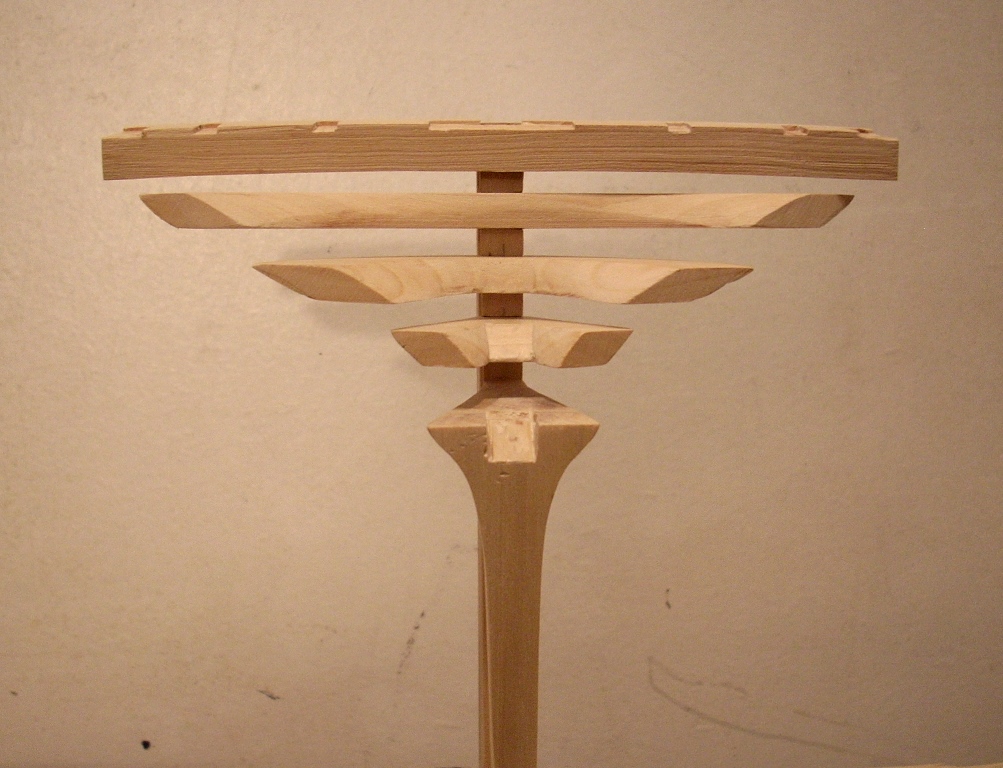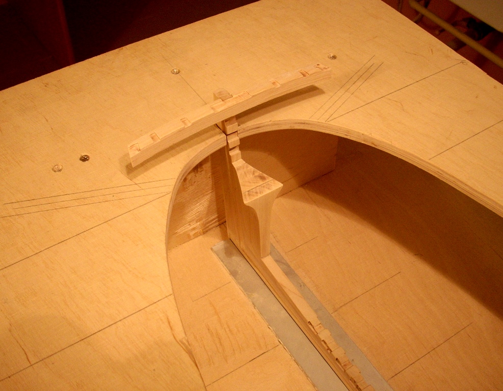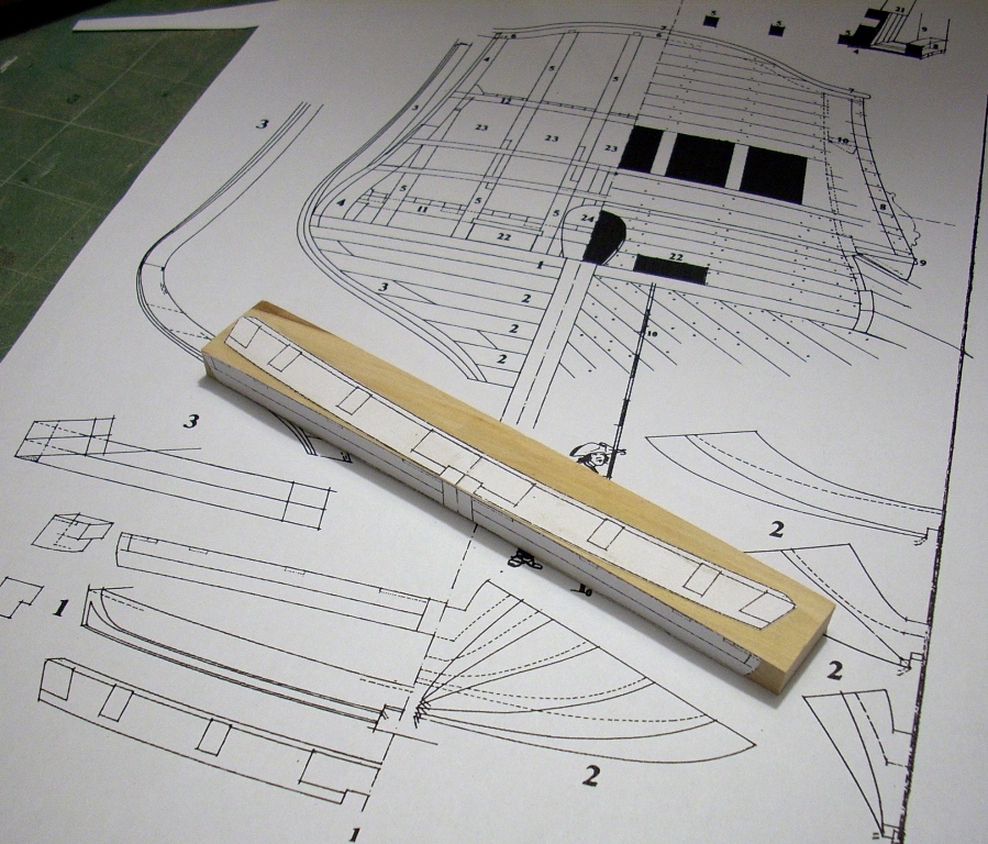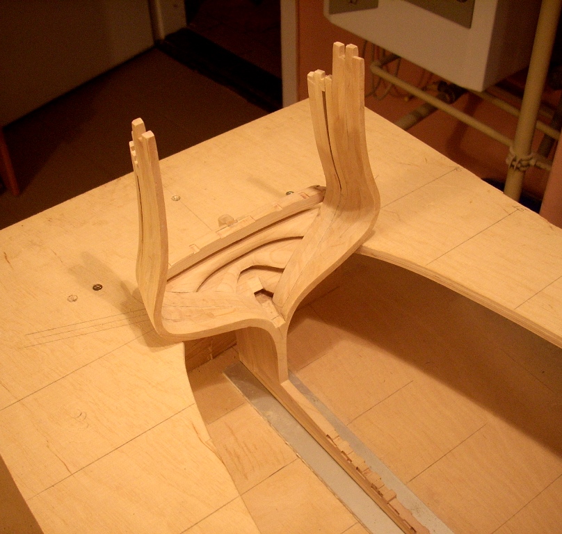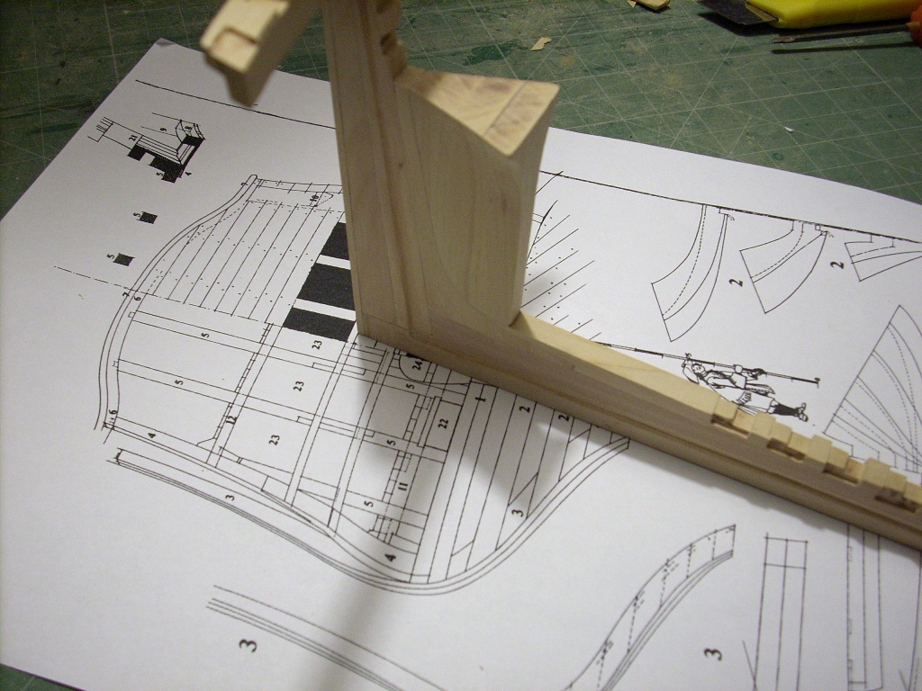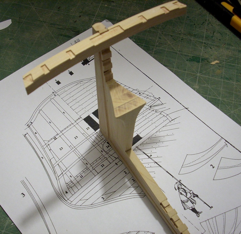 kontynuacja rufy, elementy na razie poskładane górna belka musi byc jeszcze wygładzona mieć doszlifowane brzegi po skosie